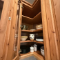1-Dish rack shelf upper cabinet Dim.:39”w x 42”h just cabinet/45 ¾”h w/crown/47”h w/ bottom trim x 12” d