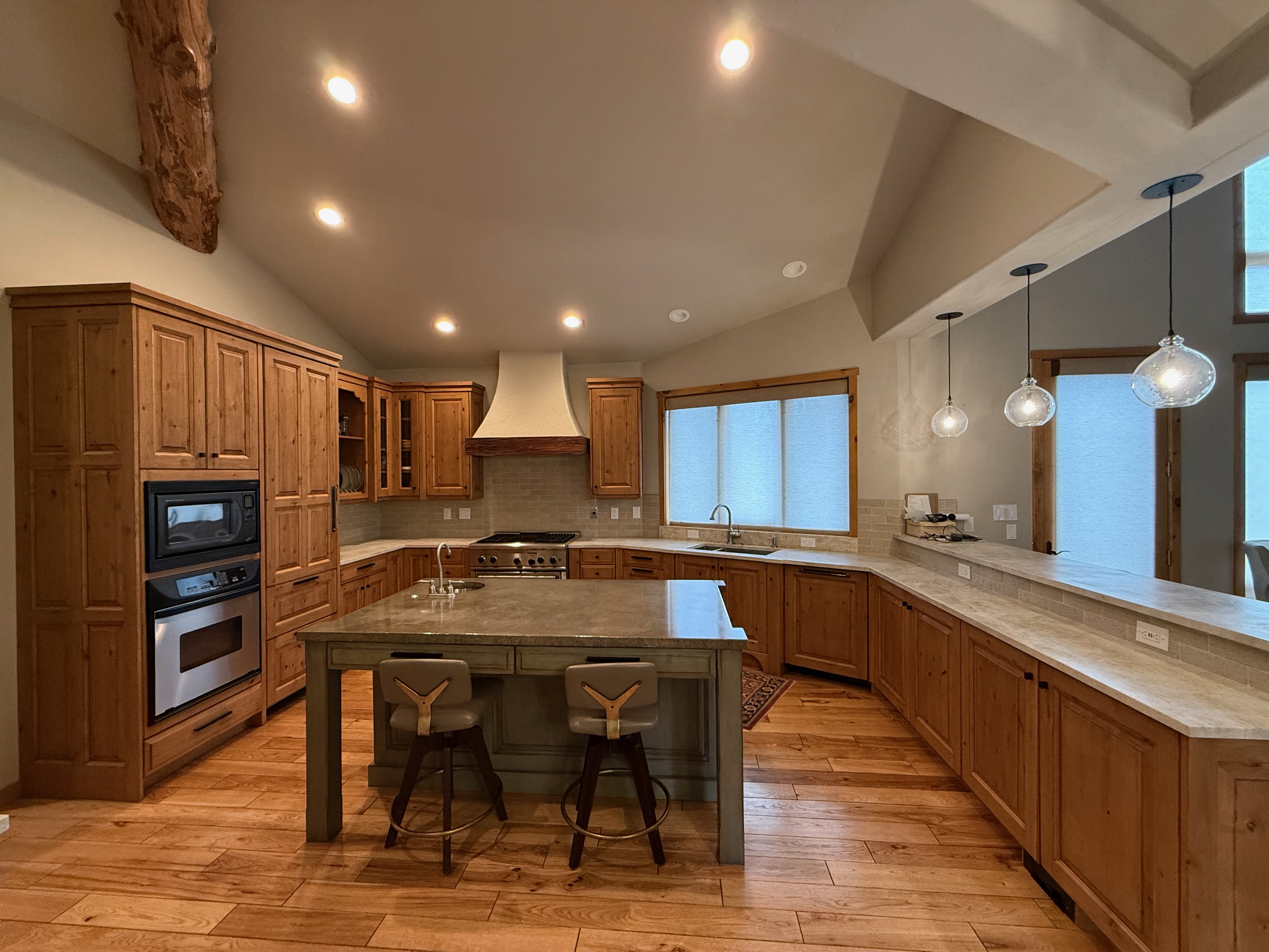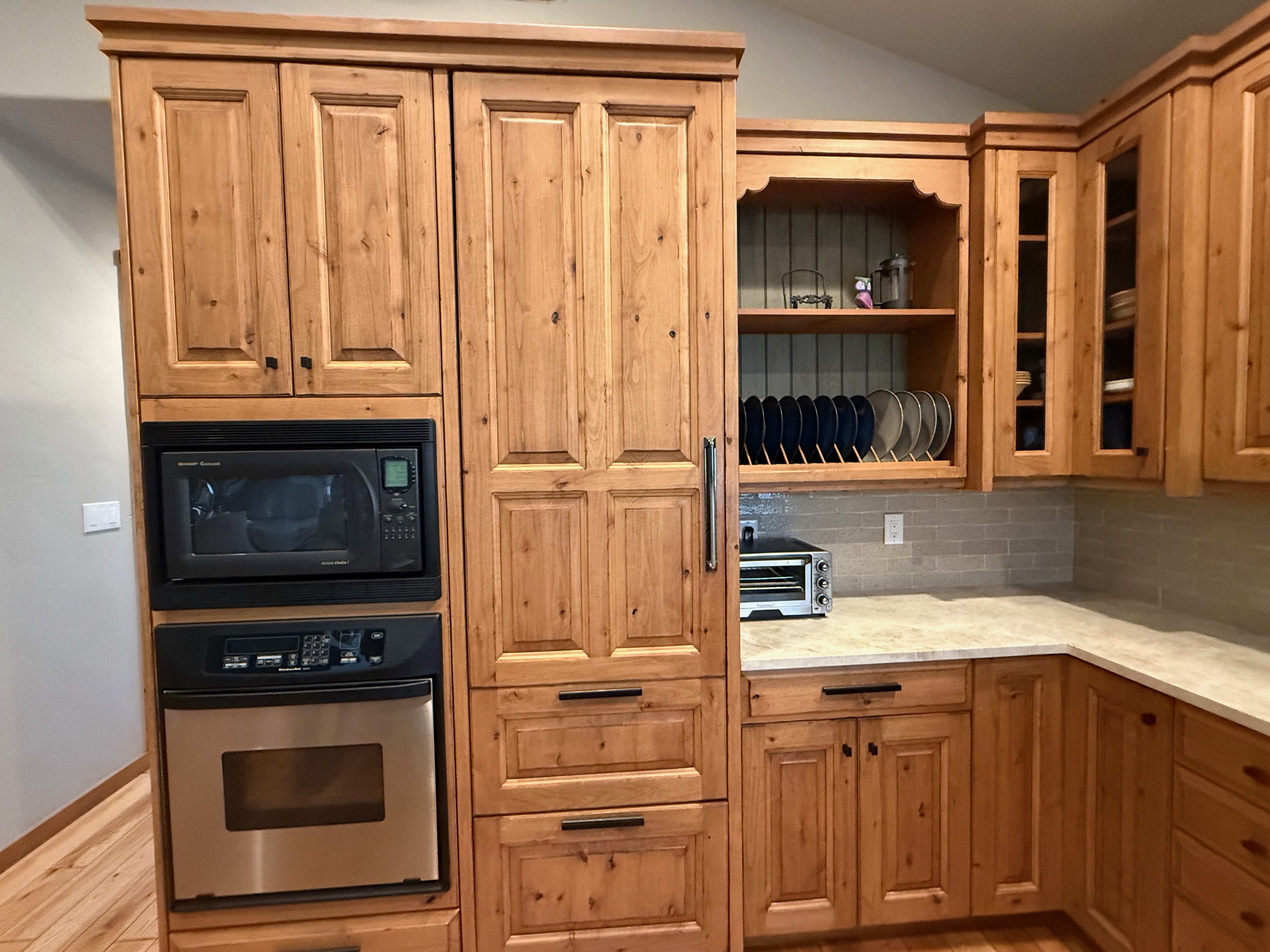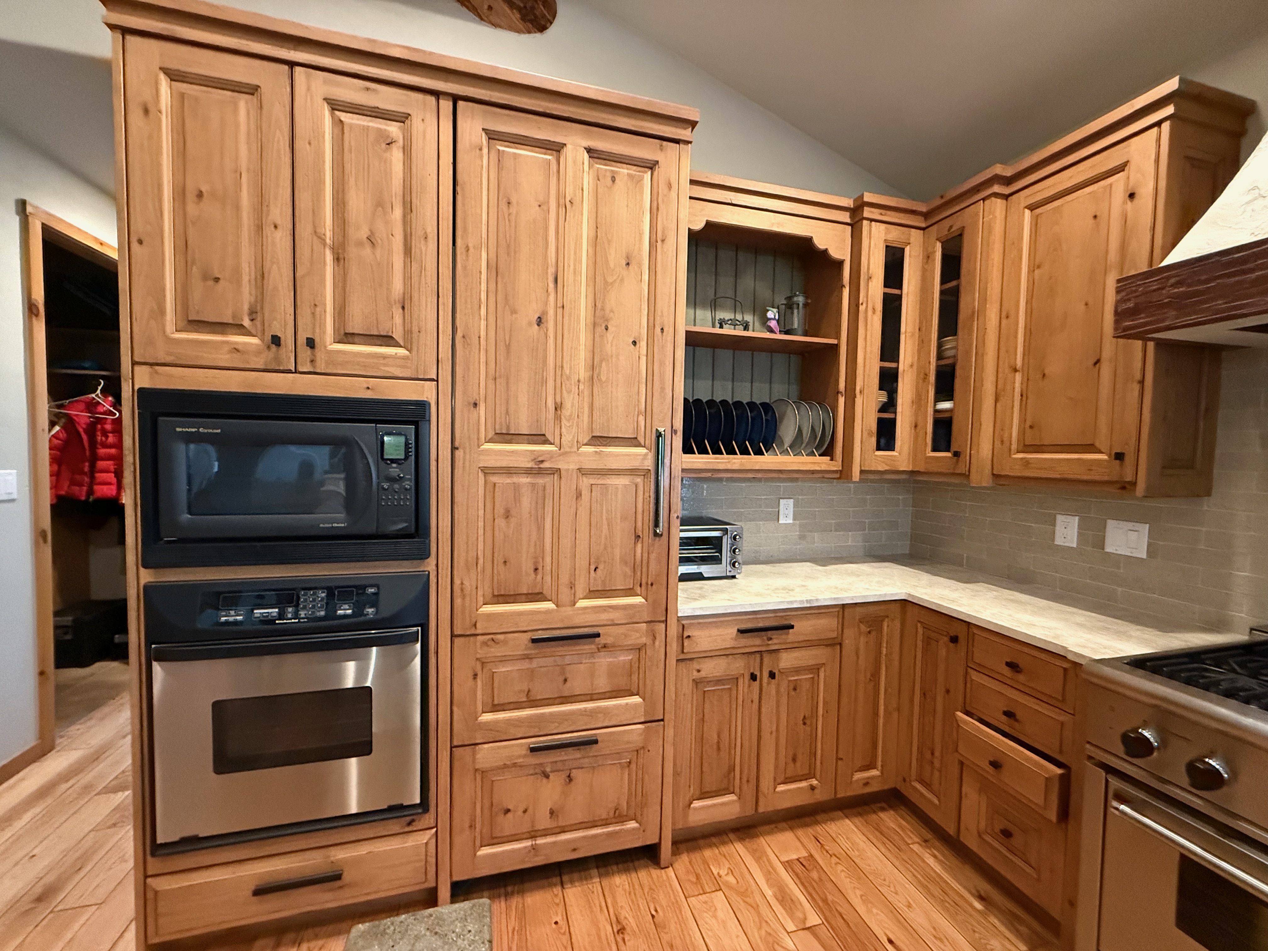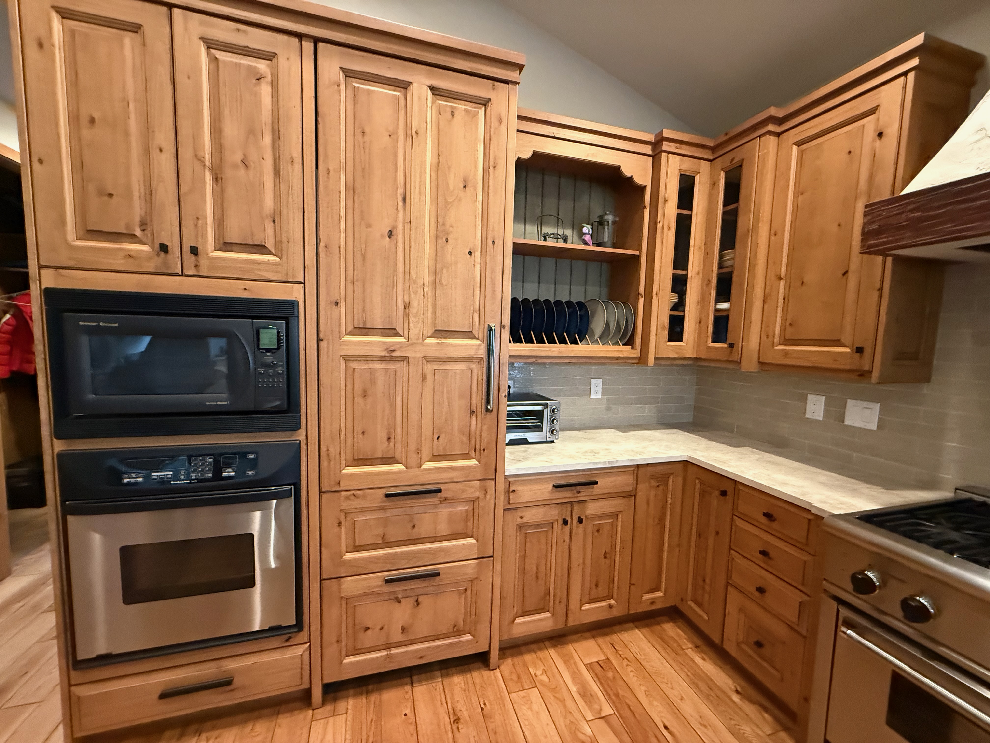 Price reduced! Beautiful Knotty Alder kitchen cabinets made by “Cottonwood fine kitchen furniture” great for a Colorado kitchen! The kitchen comes with a Sub-Zero refrigerator/freezer, refrigerator drawers, Thermador range and more! Included are nice granite countertops, sink, faucet set and three pendant lights. The kitchen is available to be removed by a qualified buyer September 8th TBD. Price for the package below.