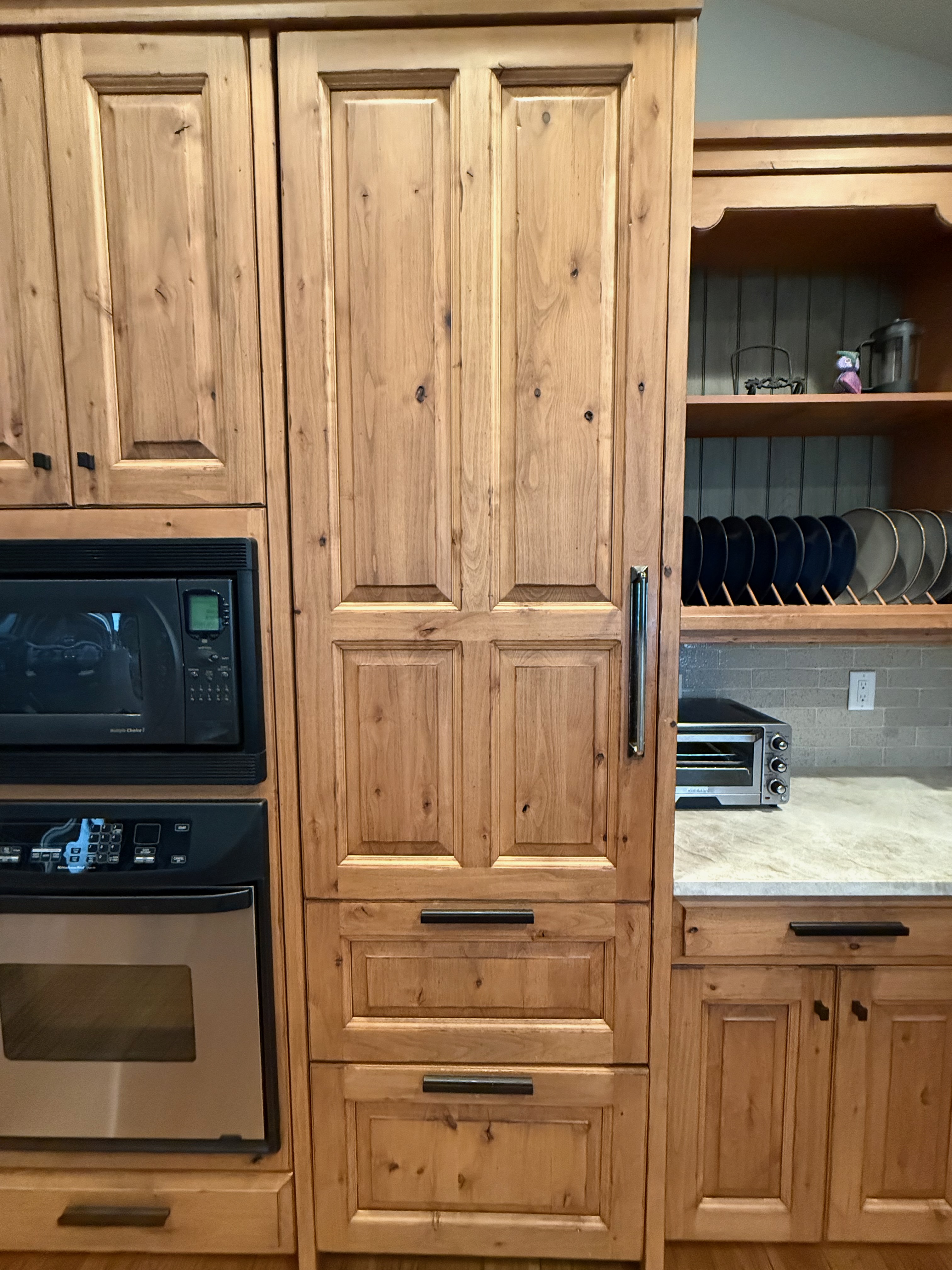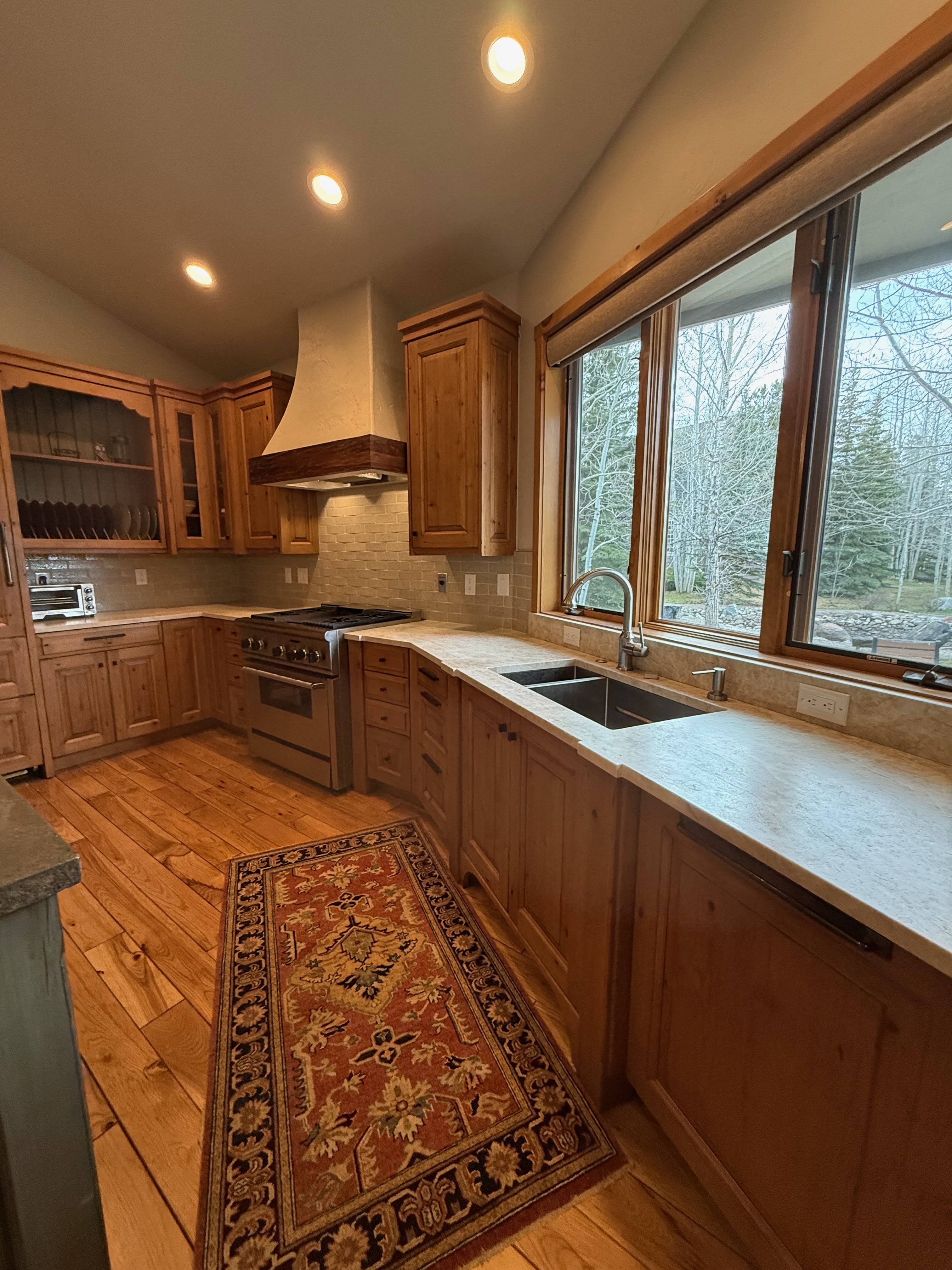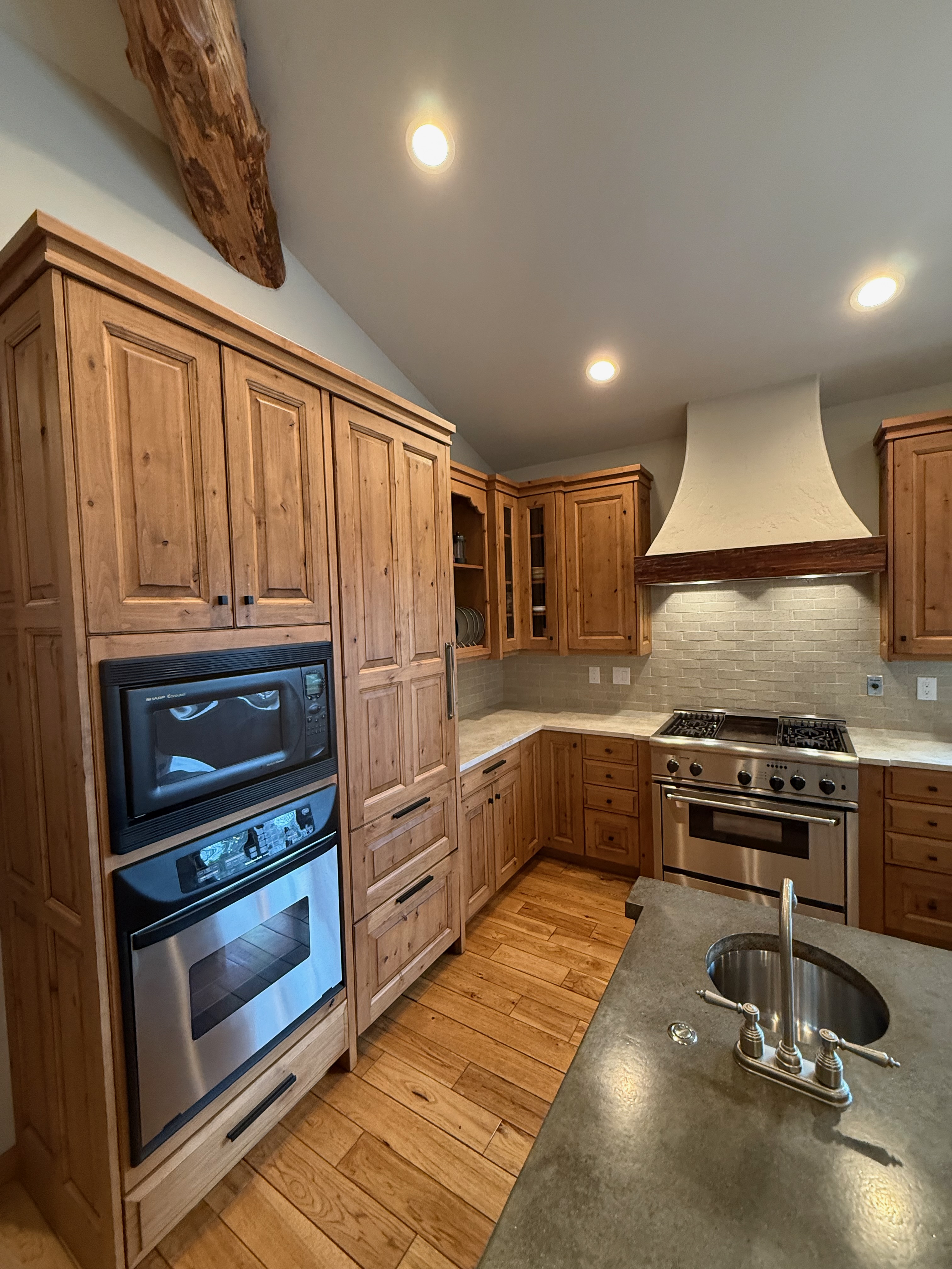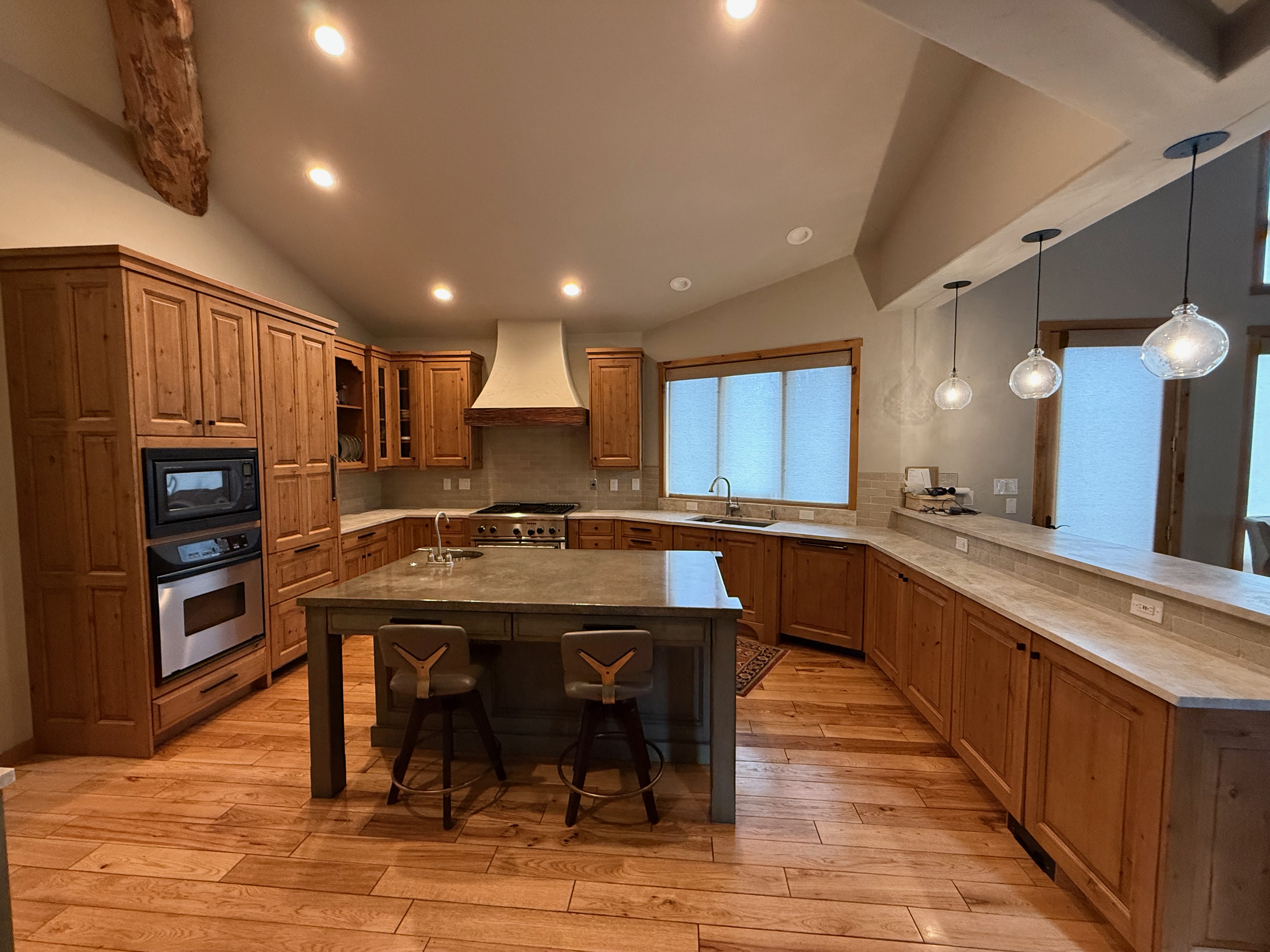 Price reduced! Beautiful Knotty Alder kitchen cabinets made by “Cottonwood fine kitchen furniture” great for a Colorado kitchen! The kitchen comes with a Sub-Zero refrigerator/freezer, refrigerator drawers, Thermador range and more! Included are nice granite countertops, sink, faucet set and three pendant lights. The kitchen is available to be removed by a qualified buyer September 8th TBD. Price for the package below.