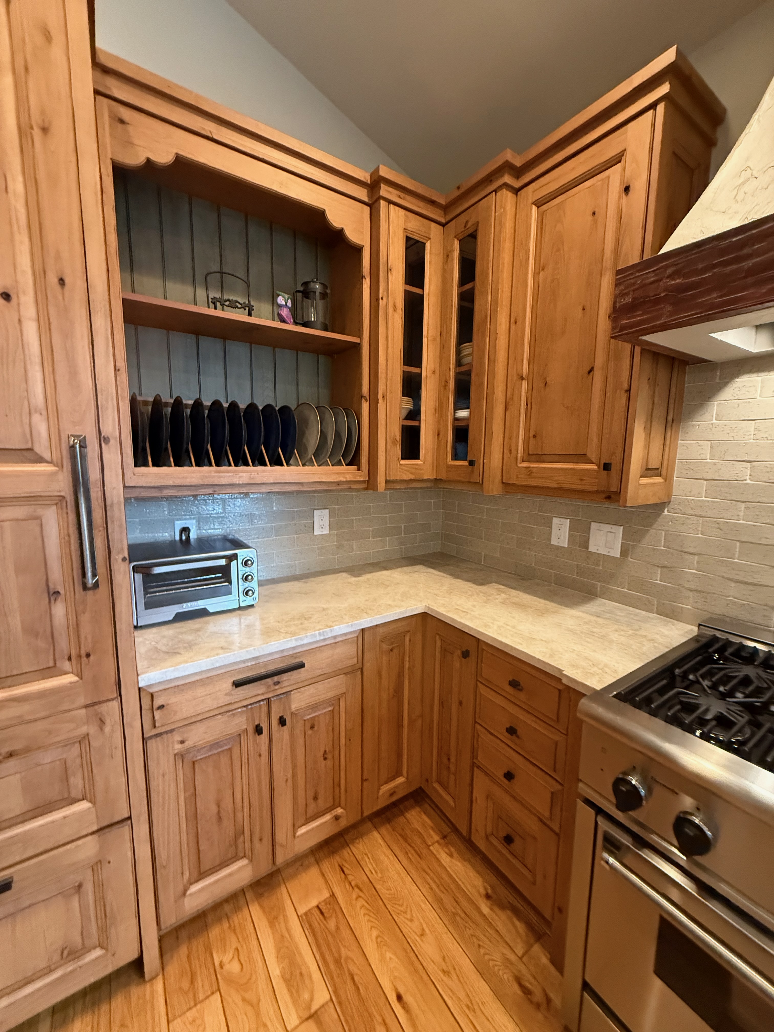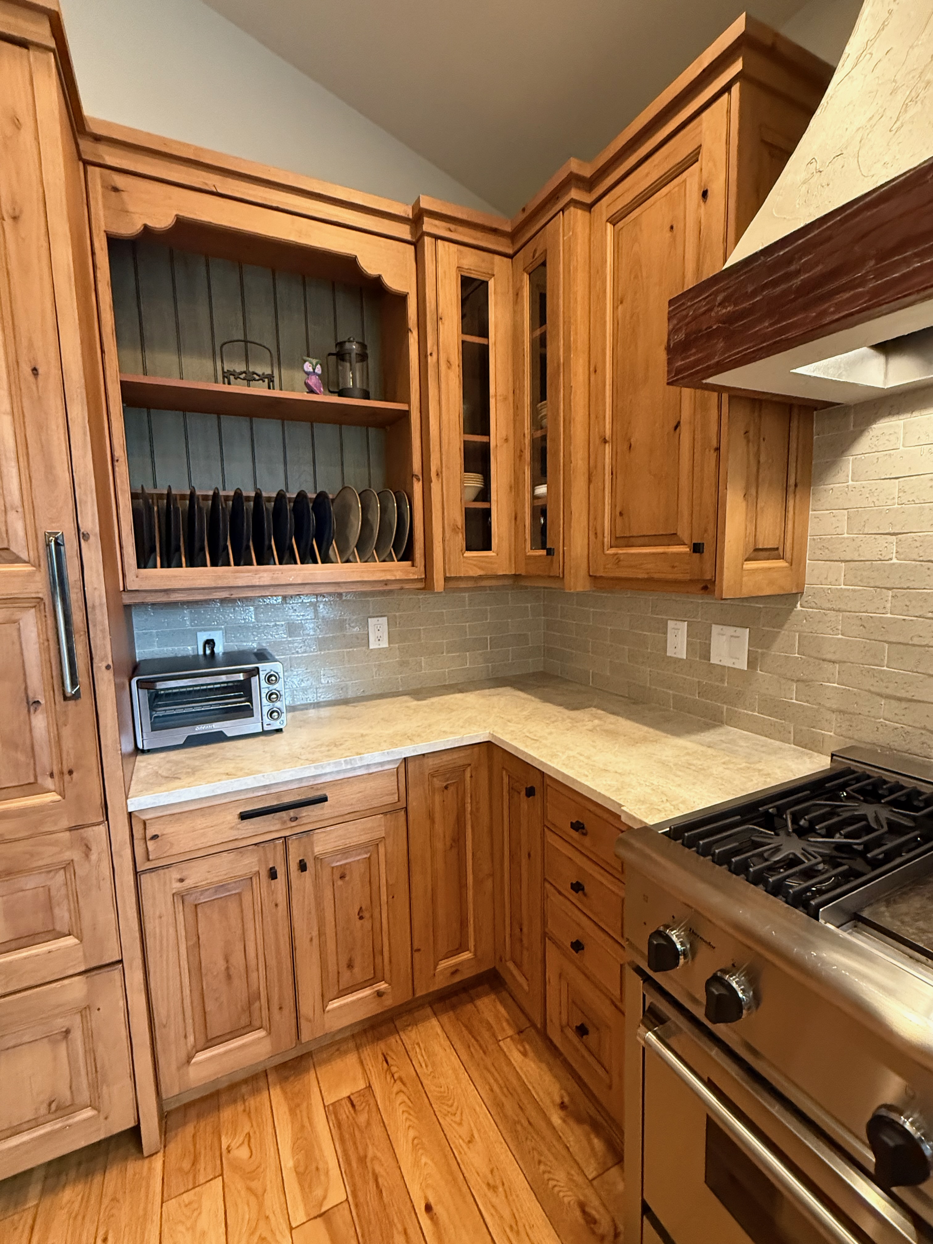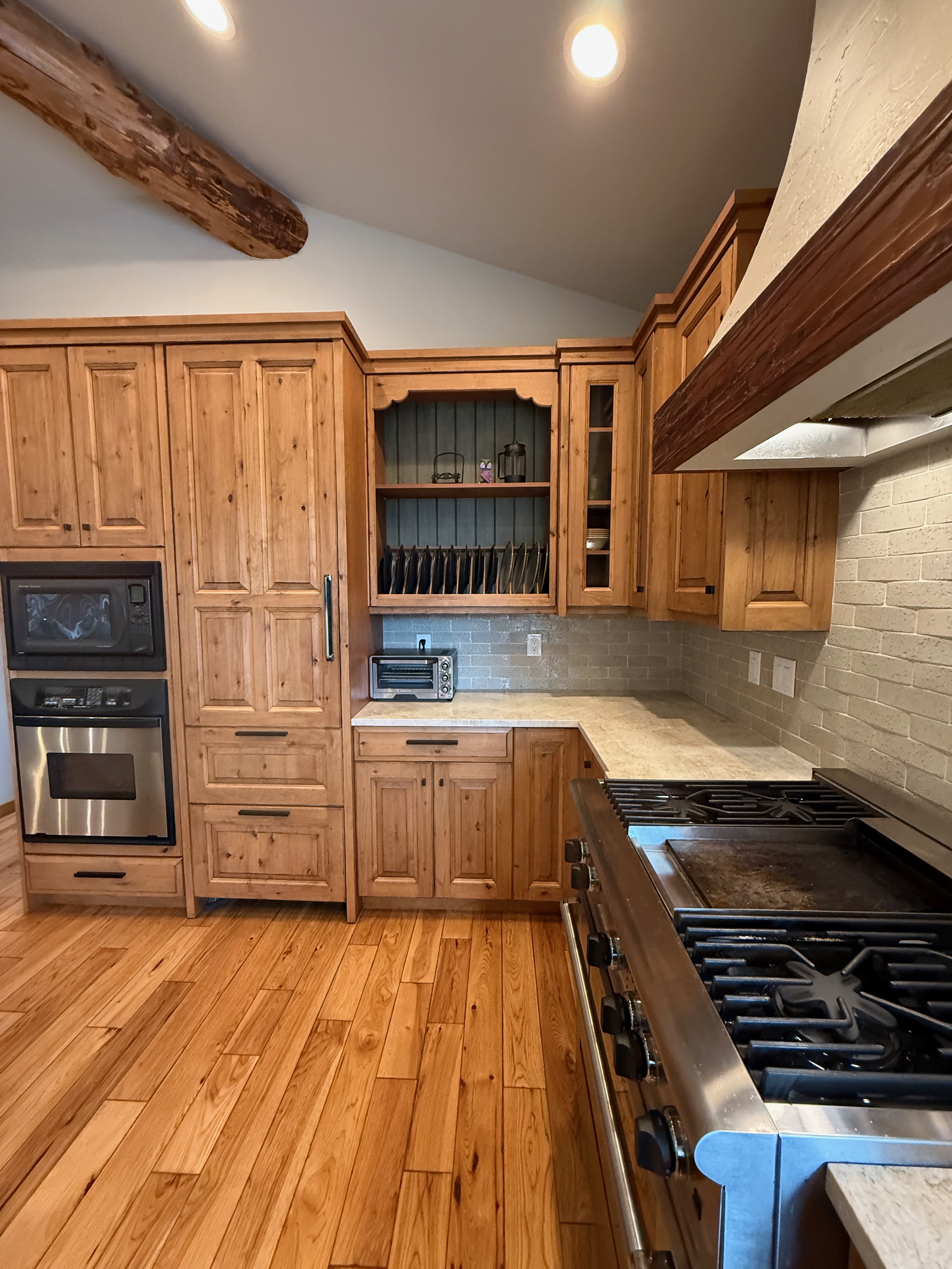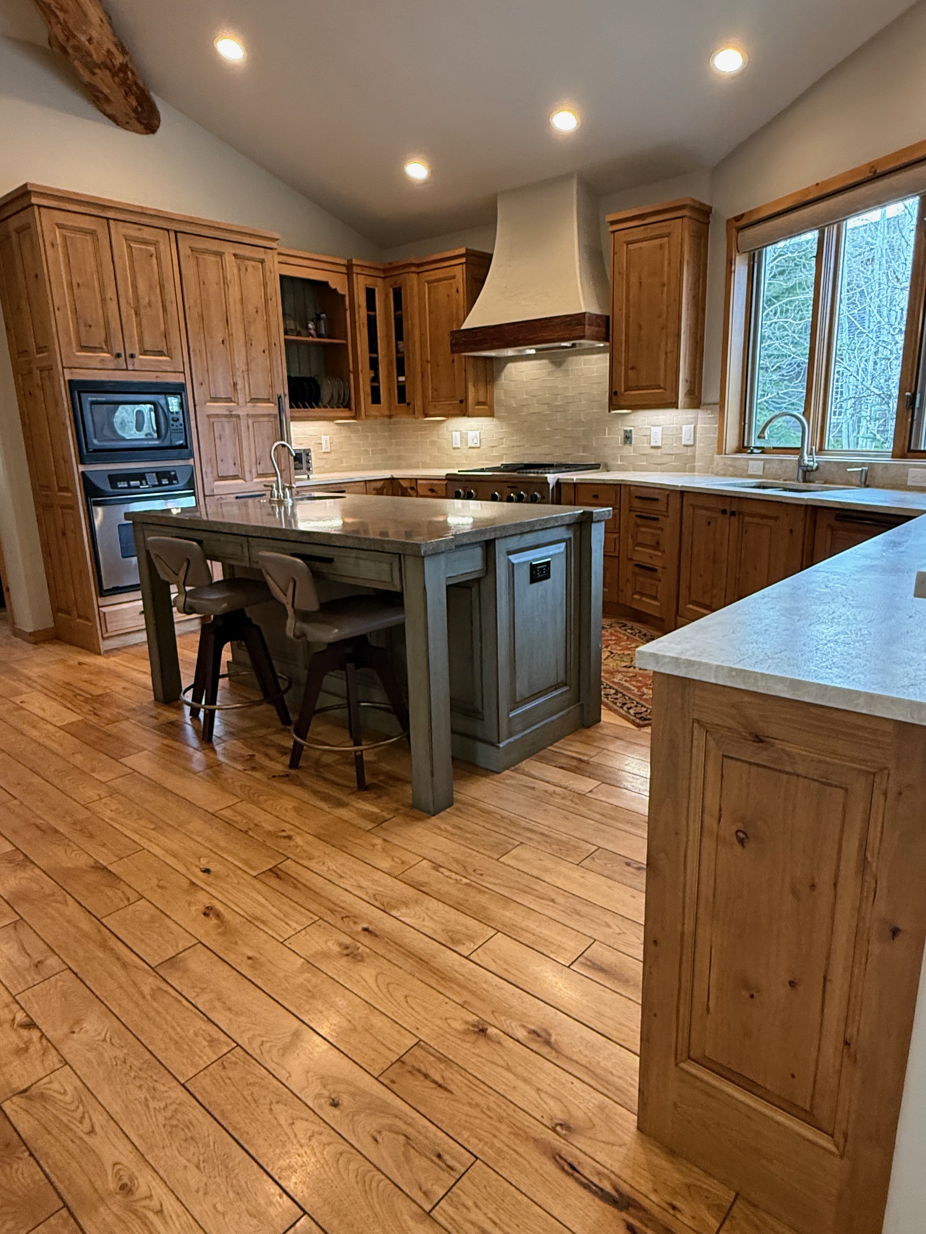 Price reduced! Beautiful Knotty Alder kitchen cabinets made by “Cottonwood fine kitchen furniture” great for a Colorado kitchen! The kitchen comes with a Sub-Zero refrigerator/freezer, refrigerator drawers, Thermador range and more! Included are nice granite countertops, sink, faucet set and three pendant lights. The kitchen is available to be removed by a qualified buyer September 8th TBD. Price for the package below.