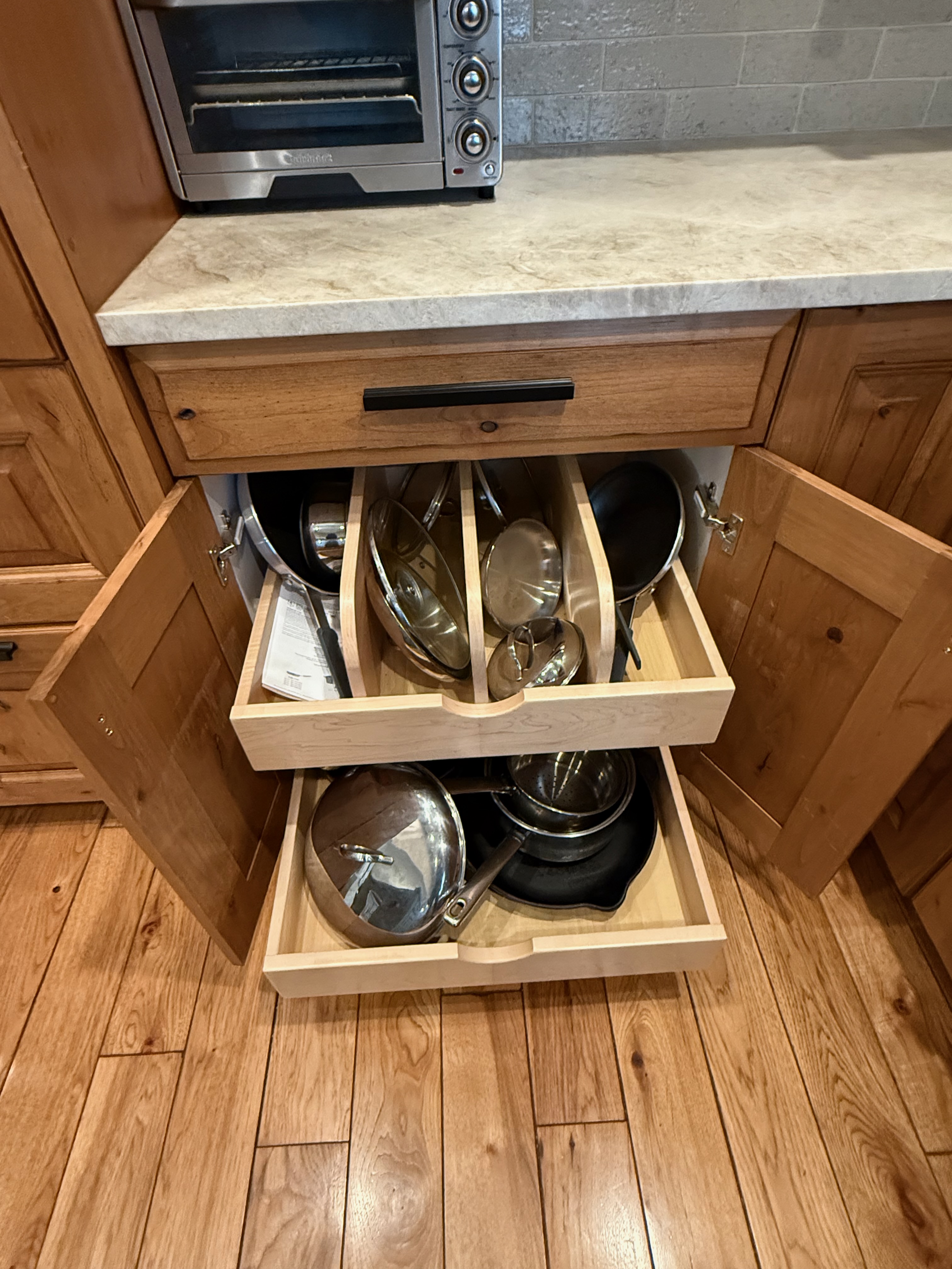 1-One drawer, Two door base cabinet, with two pull out drawers inside Dim.: 35”/36” w x 36”h x 24”d