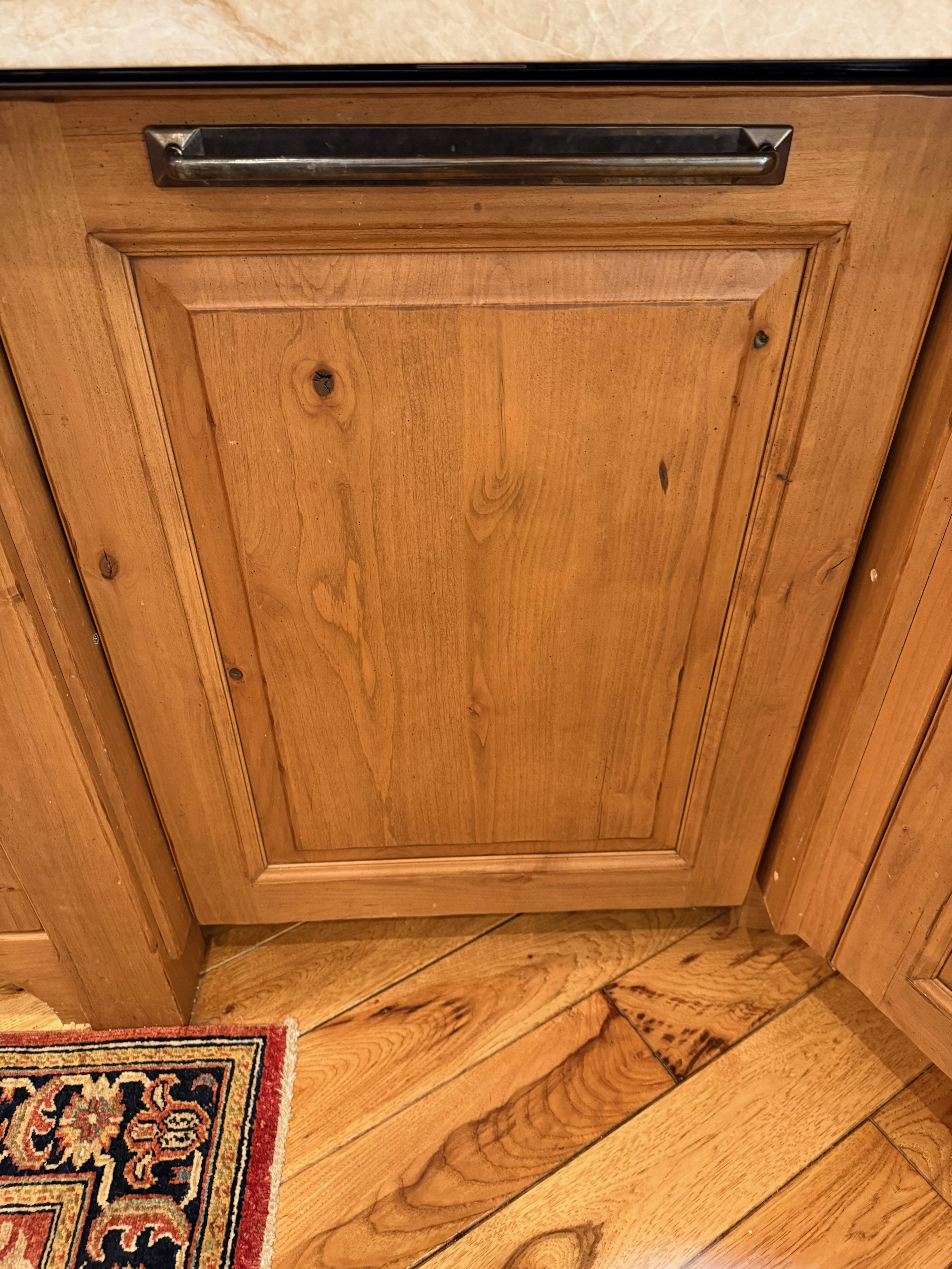 24” Bosch Dishwasher, Alder wood cabinet panel Model#SHV4303UC/U06 Serial #FD7909070034