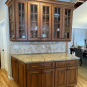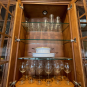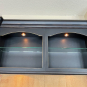 1-Two door angled glass front cabinet on sideboard Dim.: 24” w x 42”h cab only/44”3/4”w/crown/46”h x 12” d
