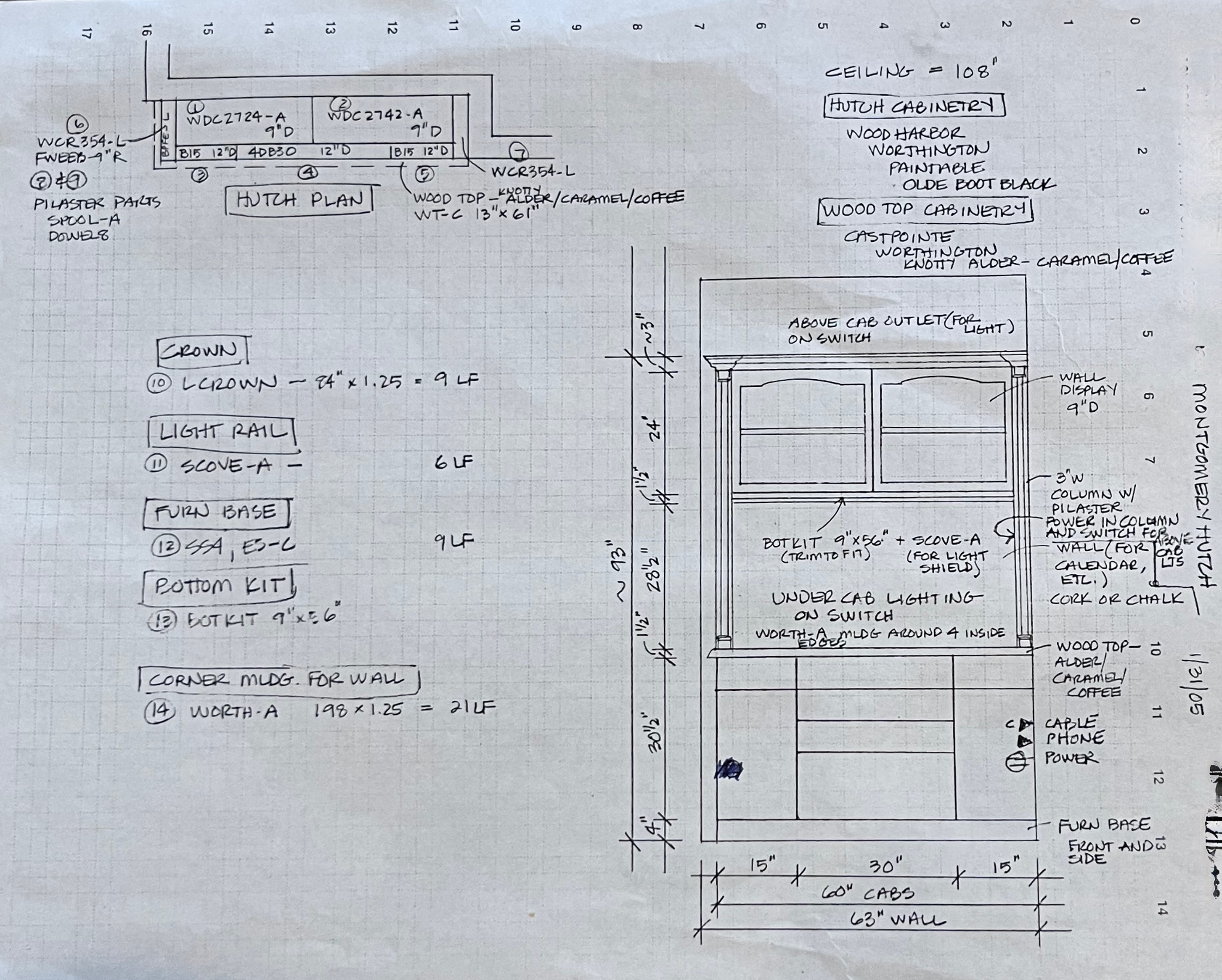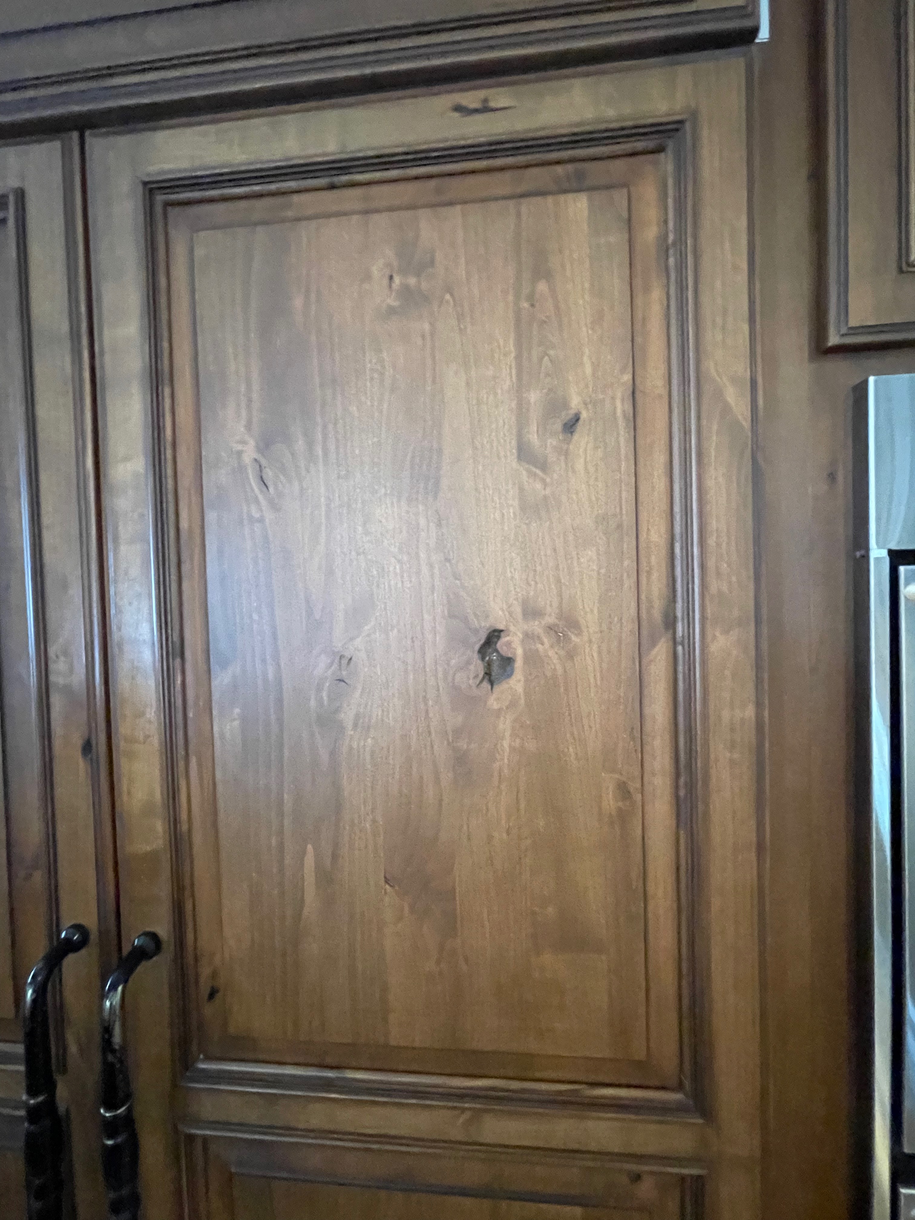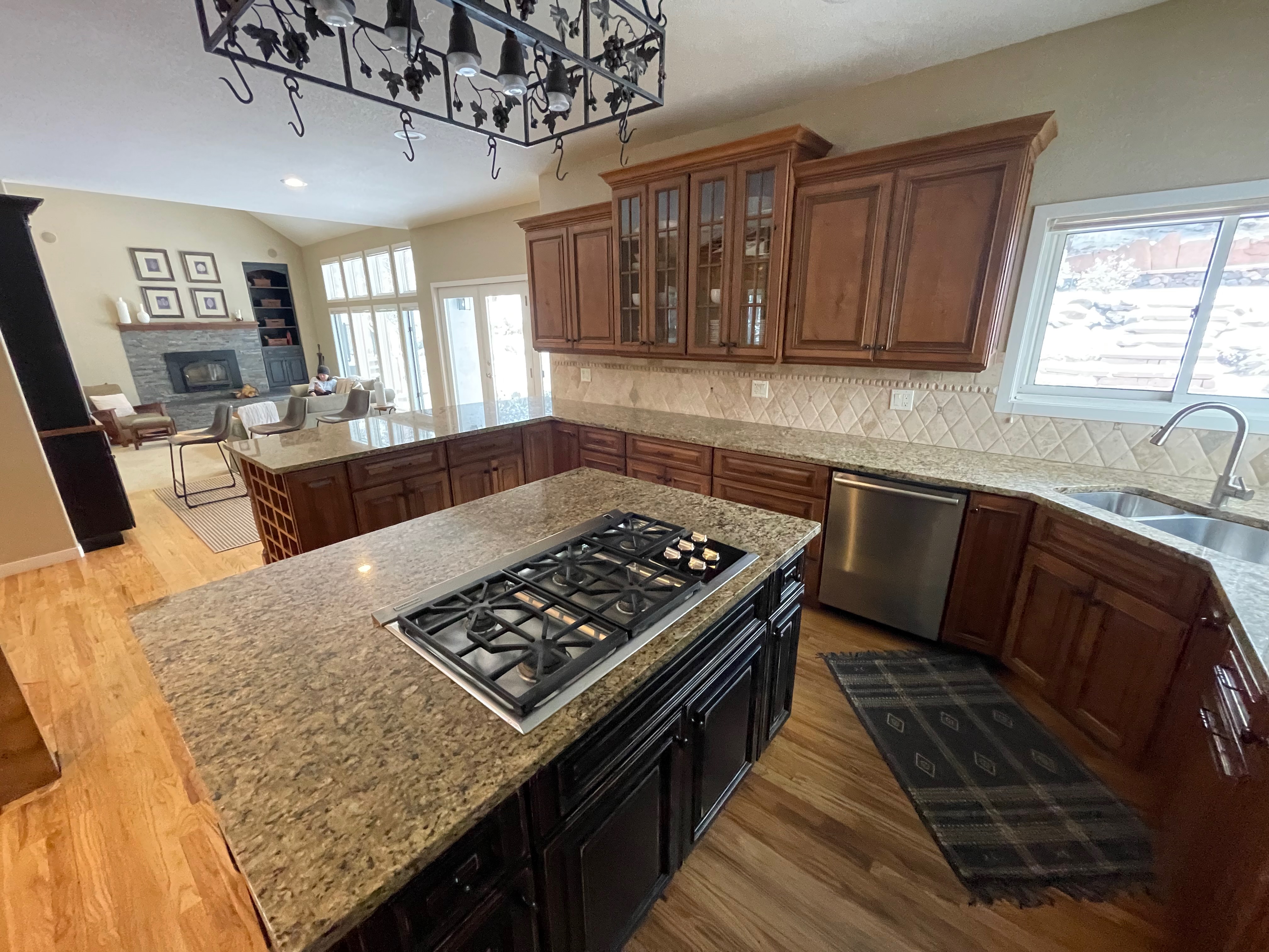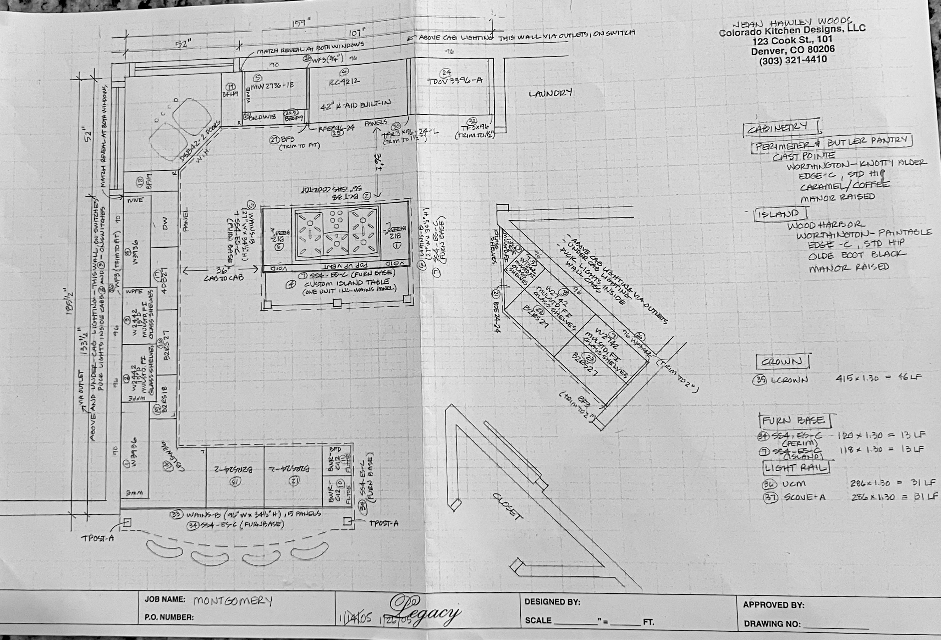 Nice rustic knotty Alder kitchen cabinets made by Woodharbor Custom Cabinetry. The cabinetry is the Worthington door style with a carmel/coffee stain. The 4th photo gives you a good idea of the finish stain.There is Worthington contrasting black wood island and hutch in paintable olde black boot. Woodharbor still manufactures the cabinetry if you need to buy additional pieces. The kitchen includes a Kitchen Aid refrigerator and oven, Wolf cooktop, downdraft and LG microwave. The kitchen can be removed as soon as February by a qualified buyer or licensed sub-contractors can be hired to remove the kitchen. Drawings attached. Price for the package below.