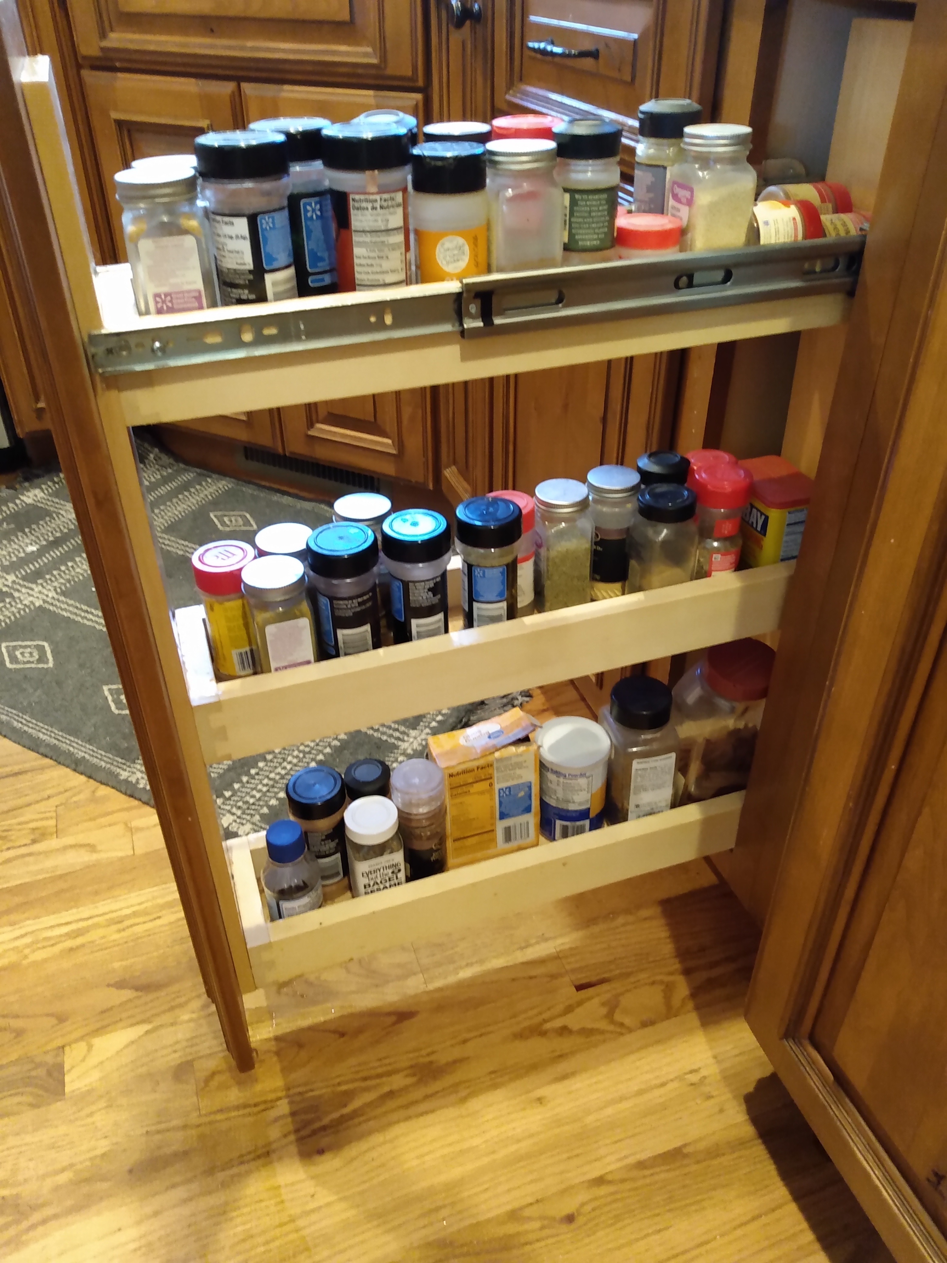 1-One pull-out door spice rack shelf Dim.:9”w x 36”h x 24”d