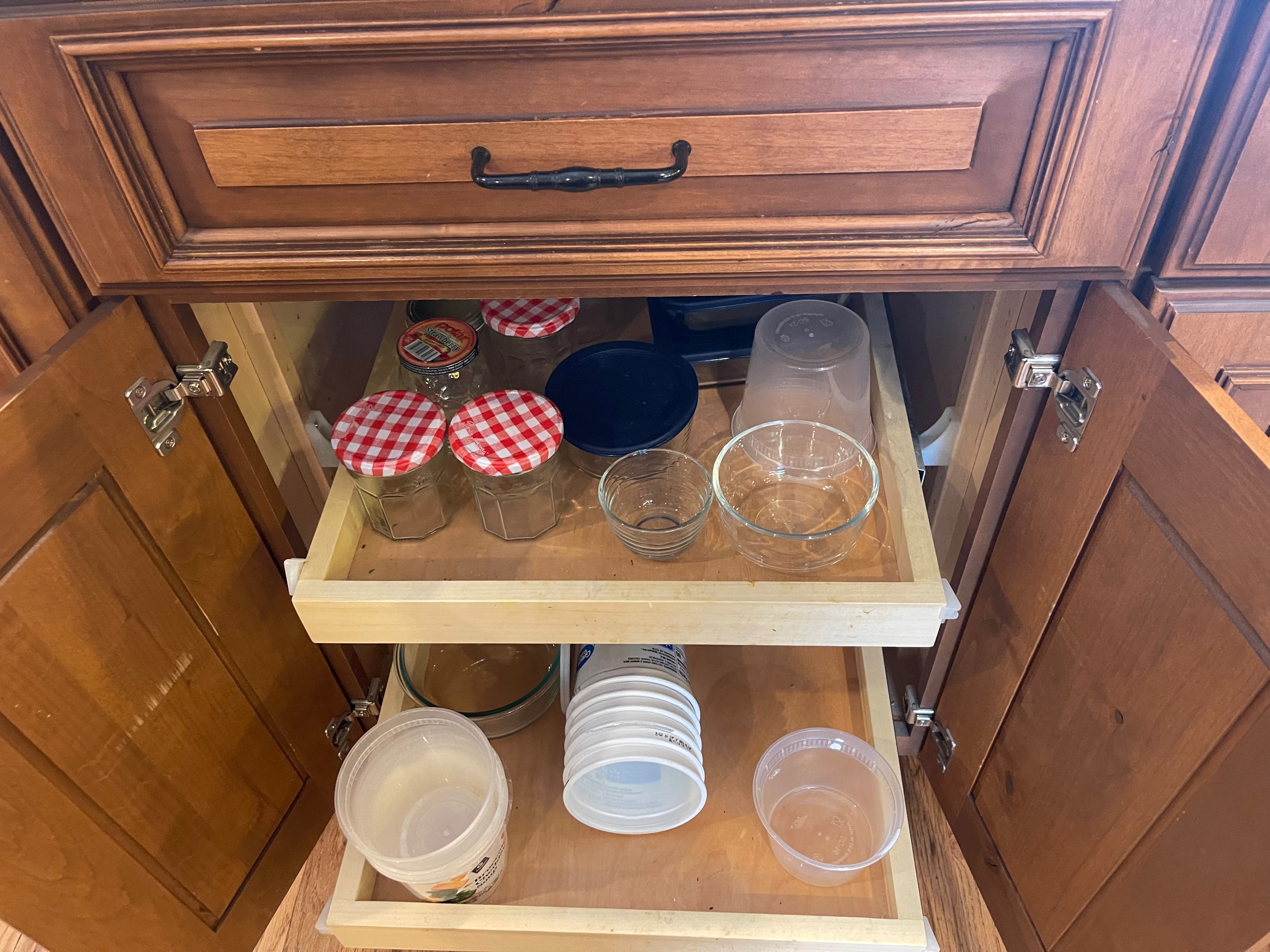 2- One drawer, Two door base cabinets w/ two pull out drawers inside Dim.:24“w x 36”h x24“d
