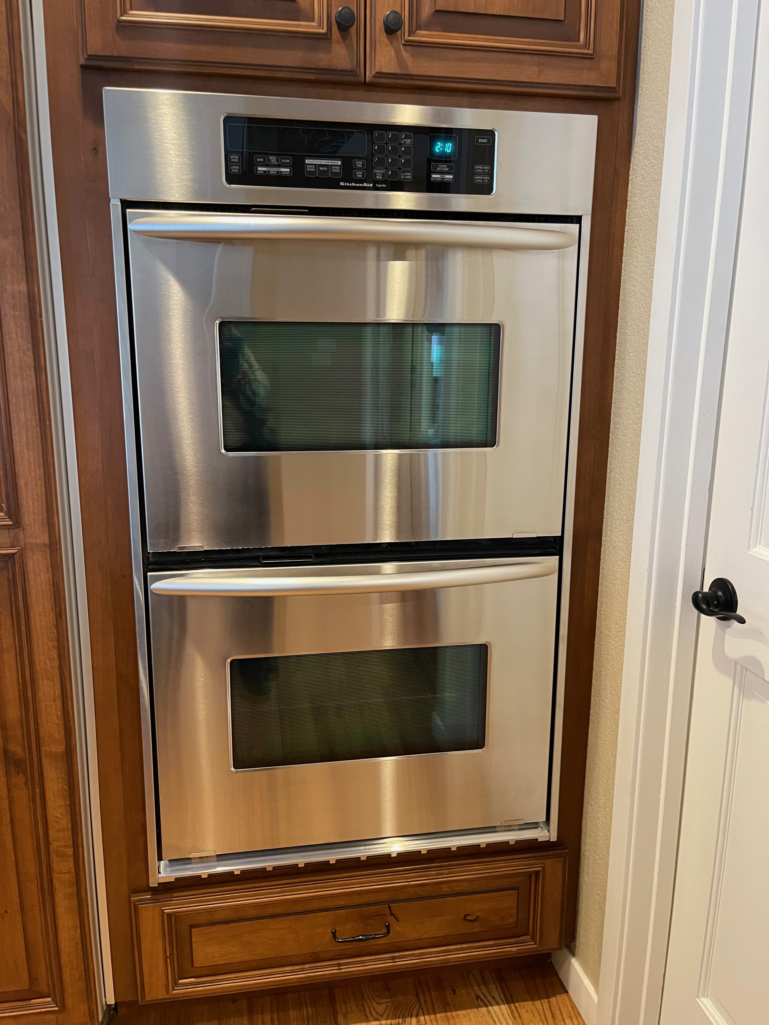 30” Kitchen Aid stainless steel double oven Model#KEBC208KSS03, Serial #XS1815064 Listing price new $2,999