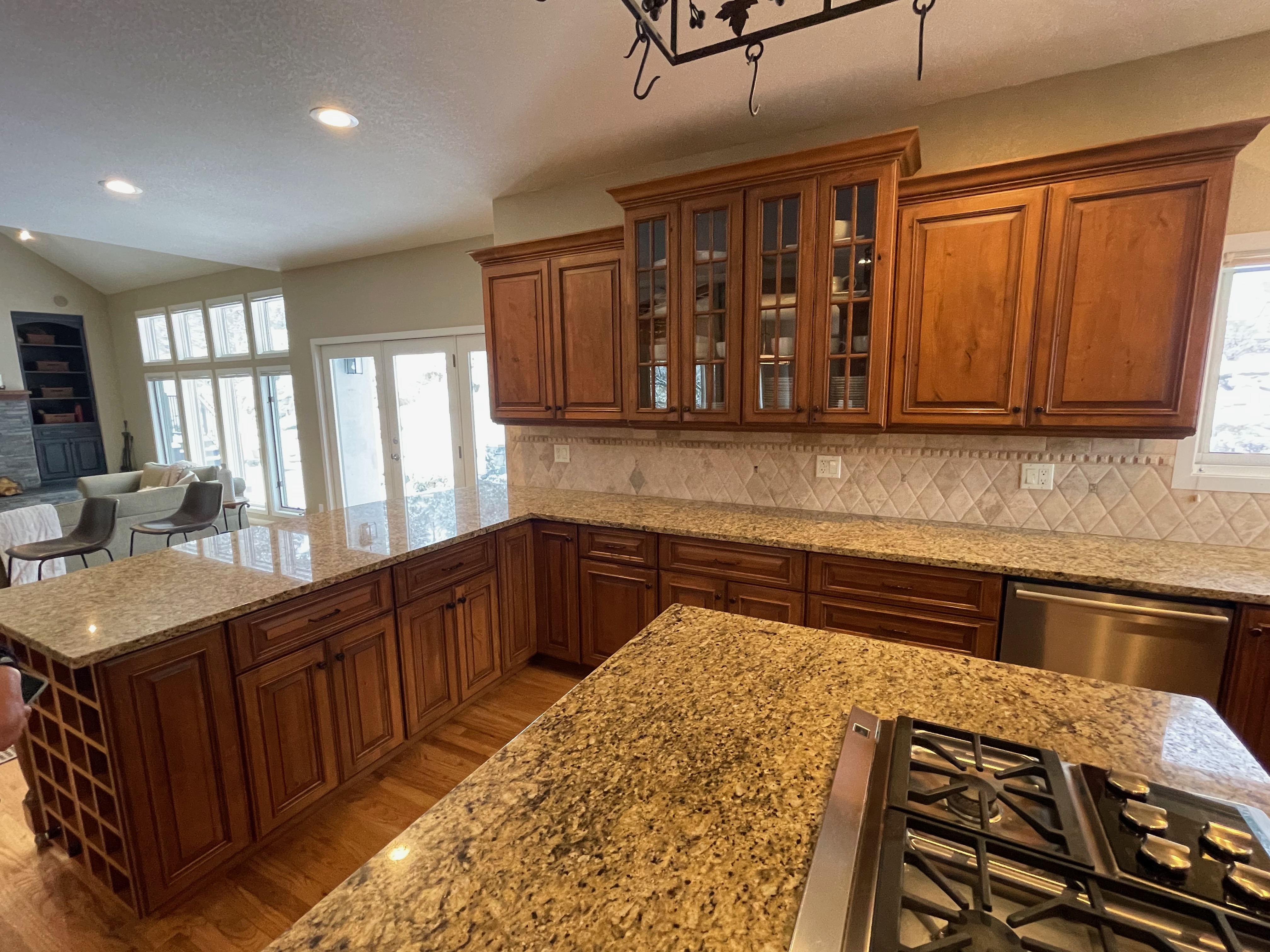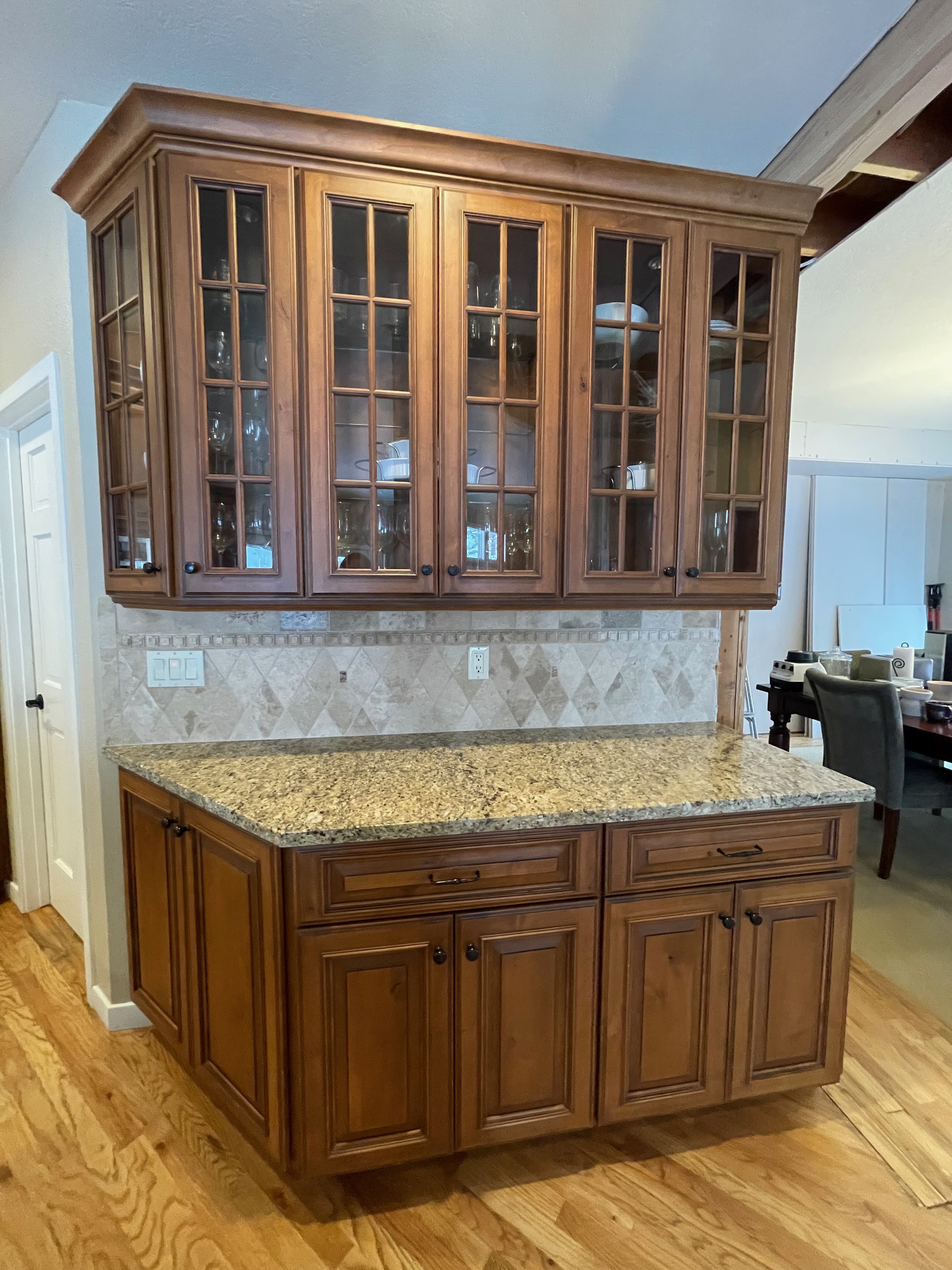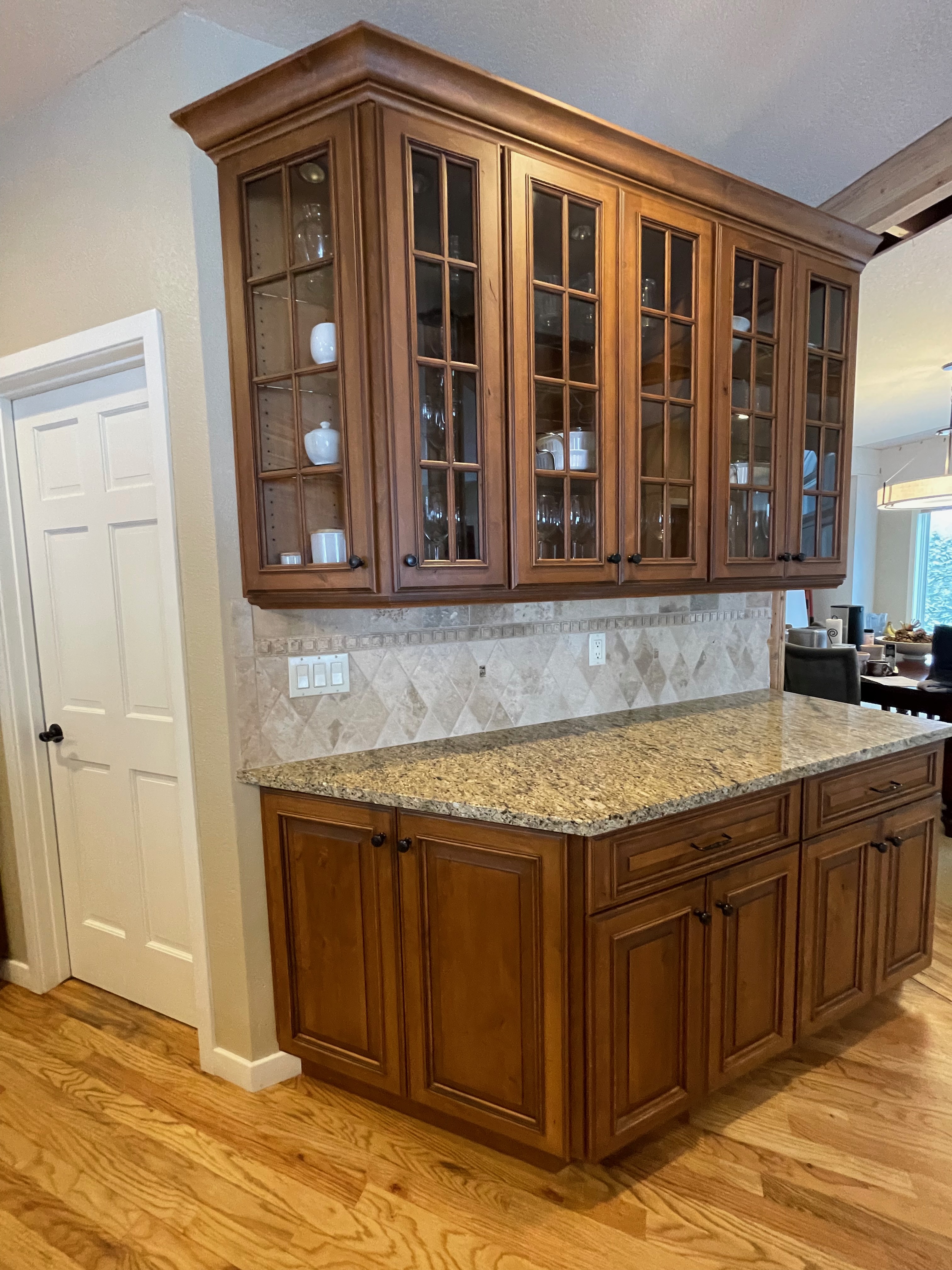 1-Wine cubbies on the end of the peninsula Dim.:24”w x 36”h x 12”d