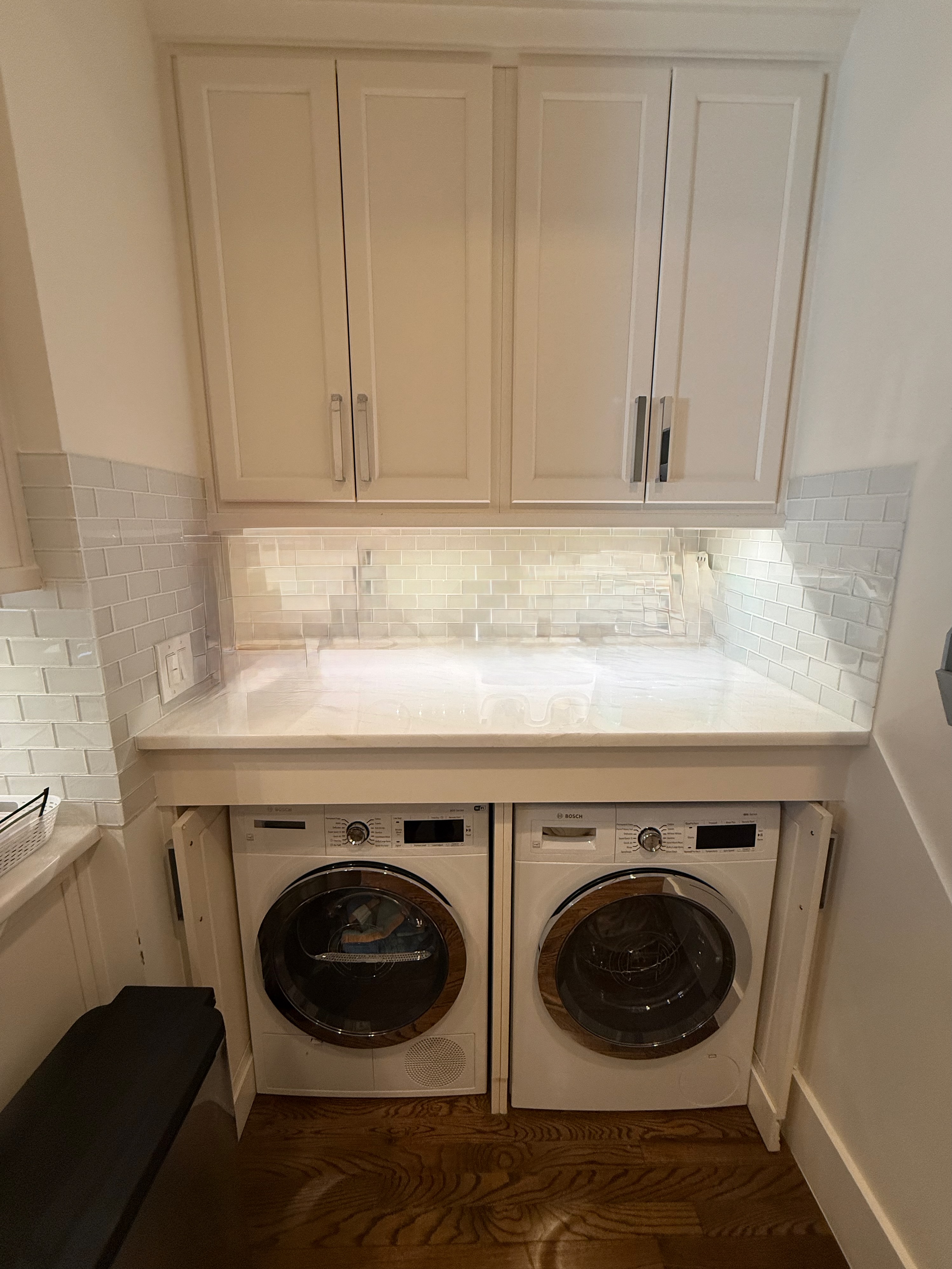 Counter over the washer and dryer 55”w x 32 ¼”d