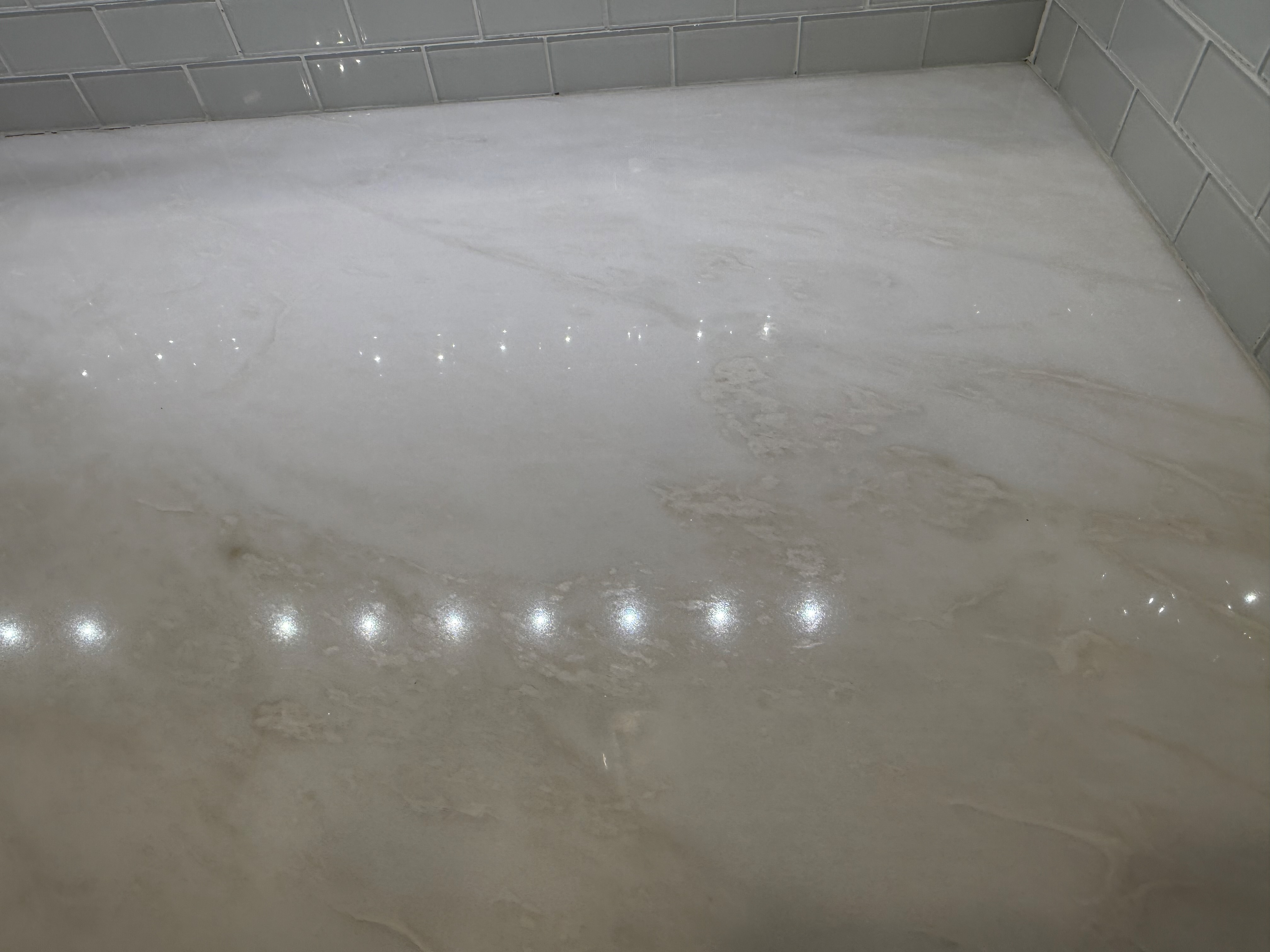 The cooktop marble wall Dim.: 122”w x 25”d, seam at the center of the cooktop