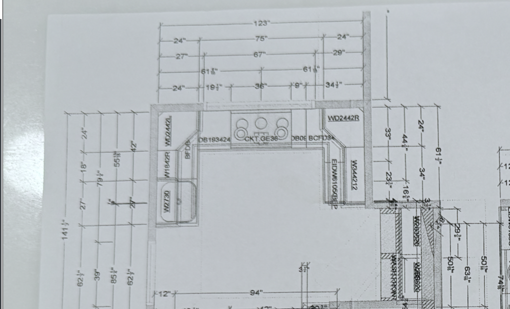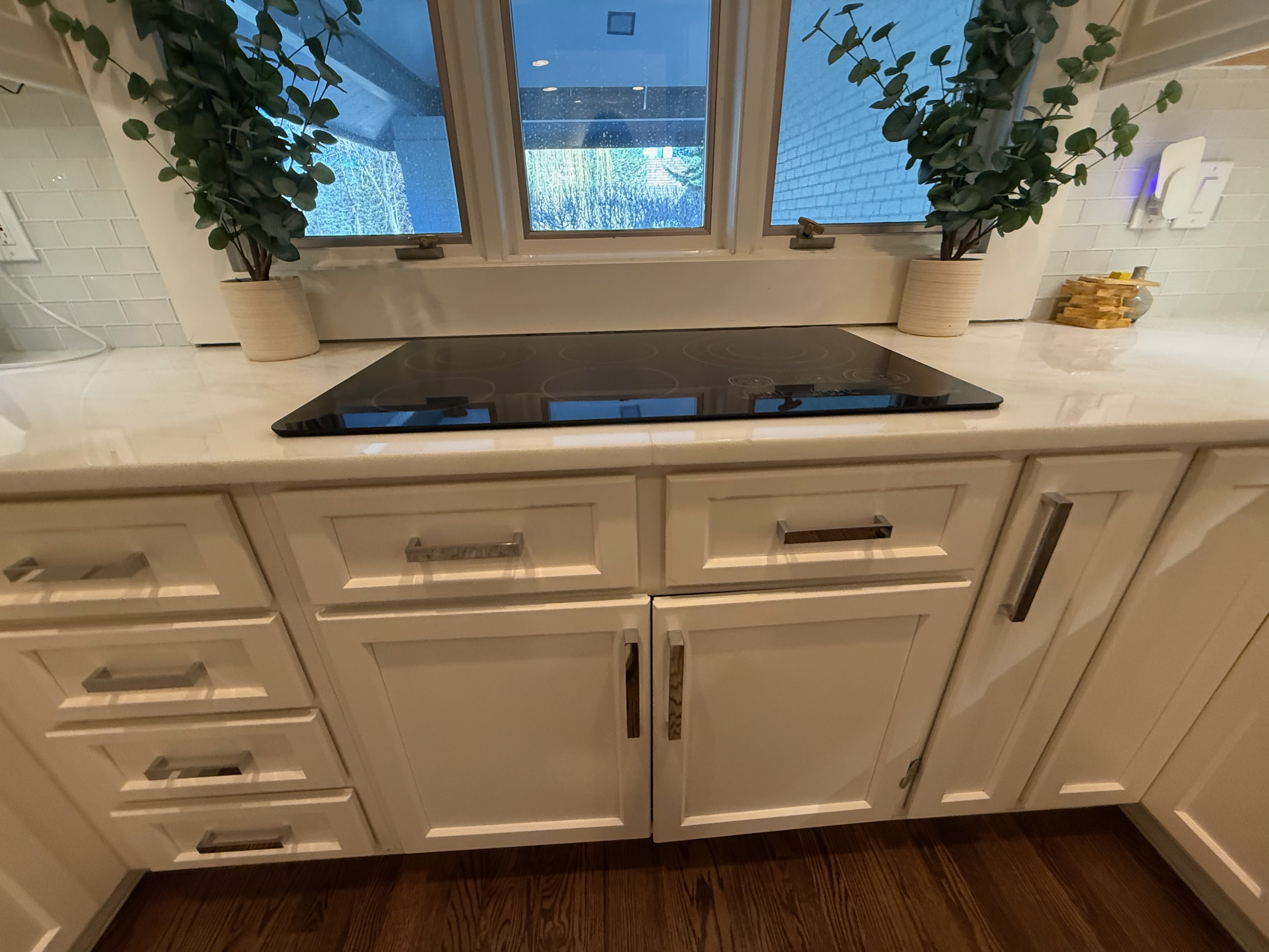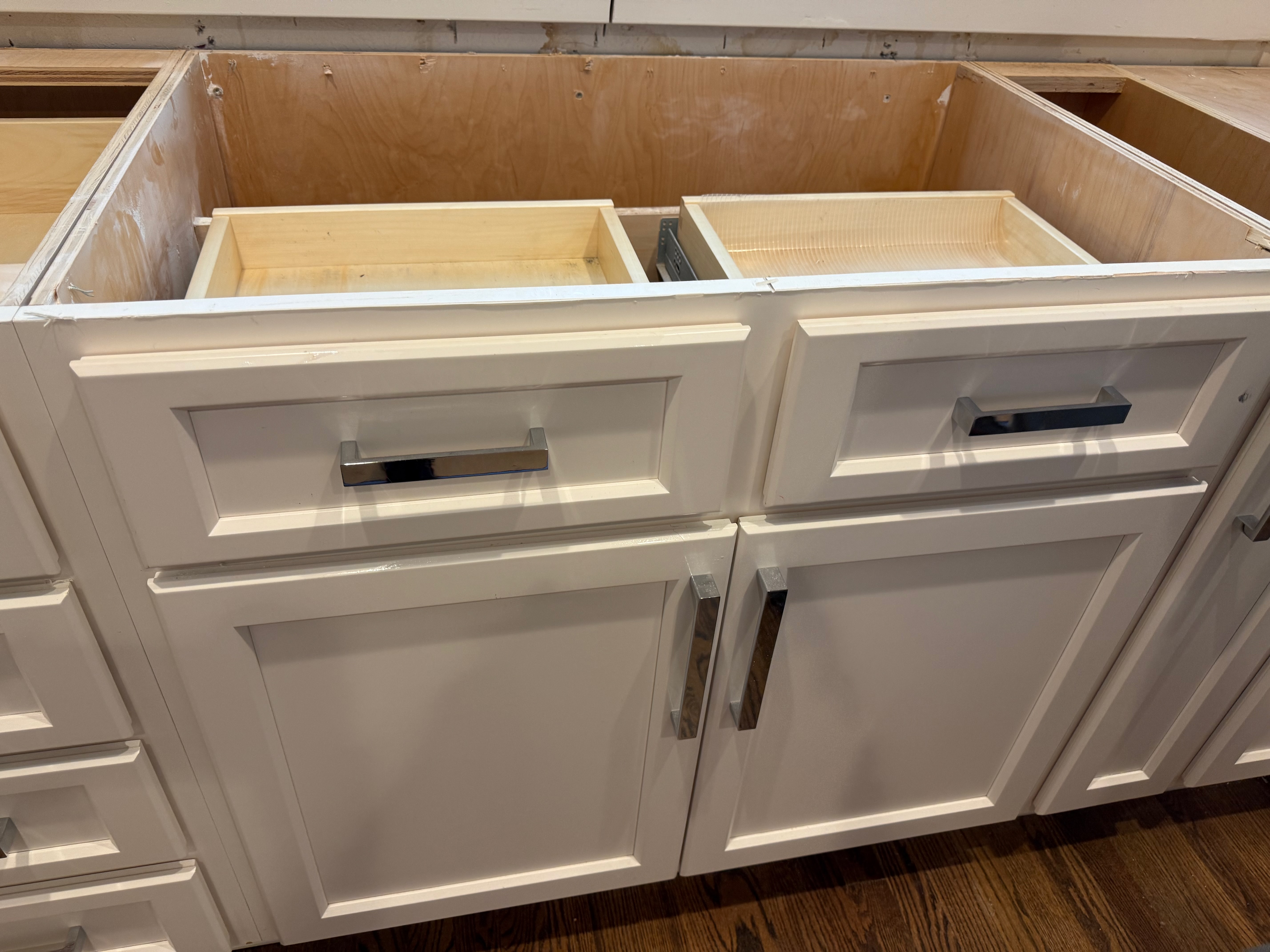 1-Two drawer, two door base cabinet for the cooktop Dim.: 37” w x 36”h x 24” d