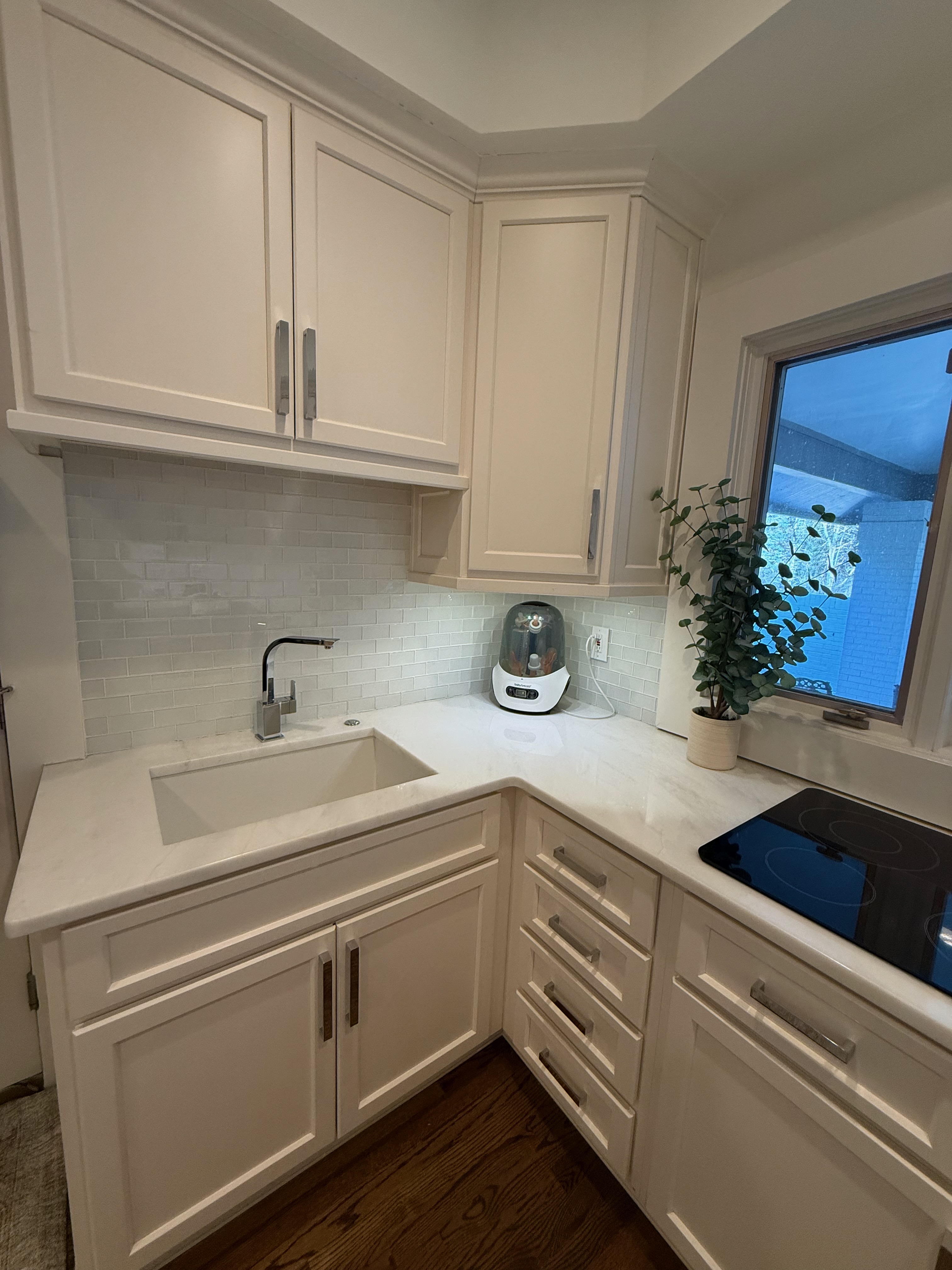 Gorgeous White Butler’s Pantry/Mud room/Laundry room all rolled into one! Could also be a tiny home kitchen. Well-made high-end custom cabinetry by Colorado creative cabinetry made locally in Englewood Colorado. These cabinets have plywood boxes+ full soft-close and dovetail drawers. The package comes with stunning level 5 slab marble countertops. The sink is solid quartz so very expensive.The package also includes nice a nice Wolf electric cooktop, sink and polished chrome faucet set and disposal. The ceilings in this room are 8’. This set matches and is from the same home as the large white kitchen listed for sale before. Photo #19 is the drawings of this room. The drawing can be emailed. Everything has been carefully uninstalled by licensed contractors and moved to storage. Ready to pick up! Pricing for the package below.