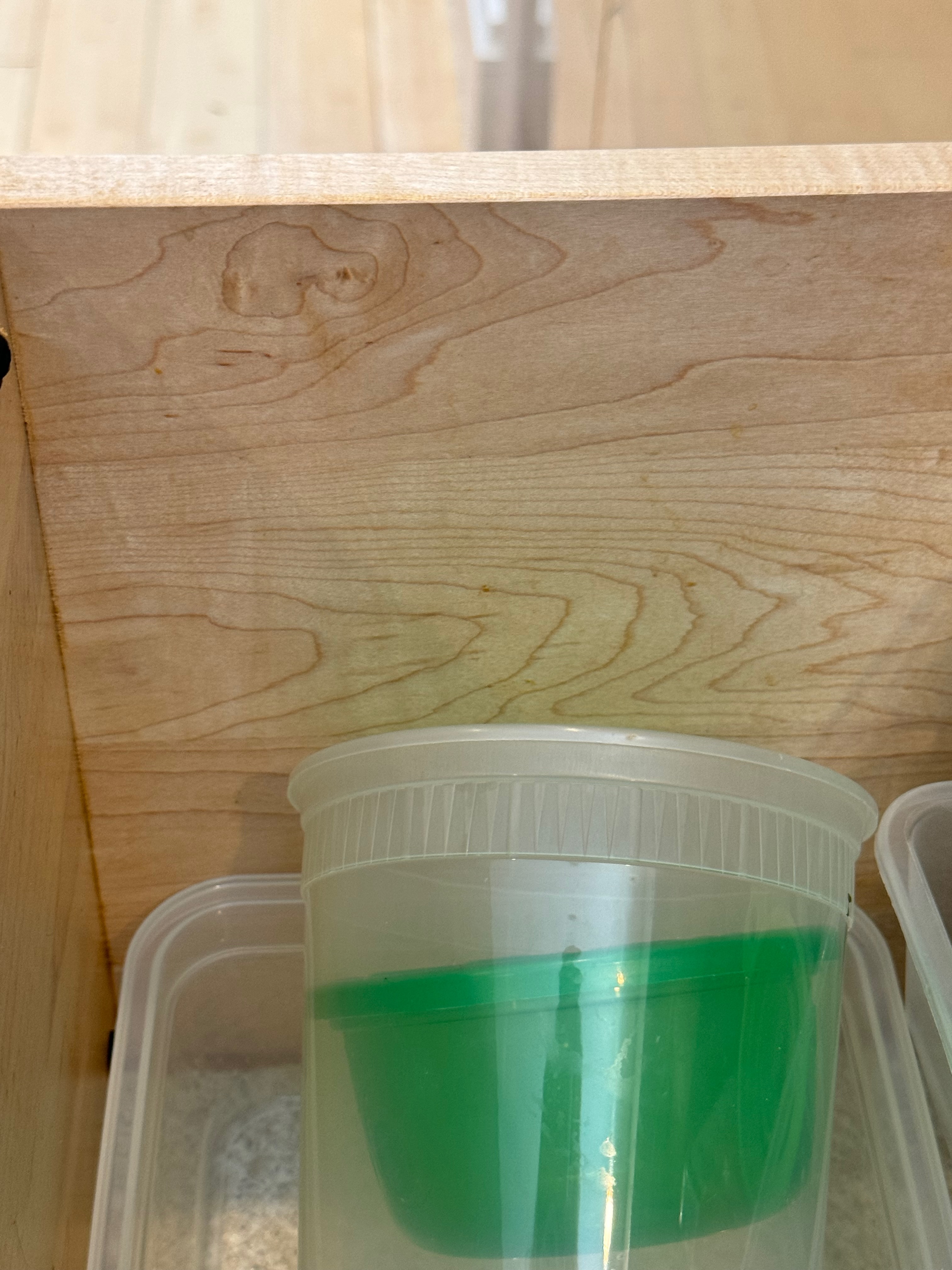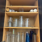 1-One door base pull-out base cabinet in the lighter finish w/ two trash cans inside Dim.: 18” w w/ filler left x 36”h x 24” d