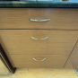 1-Three drawer base cabinet in the lighter finish Dim.; 18”w x 36”h x 24” d