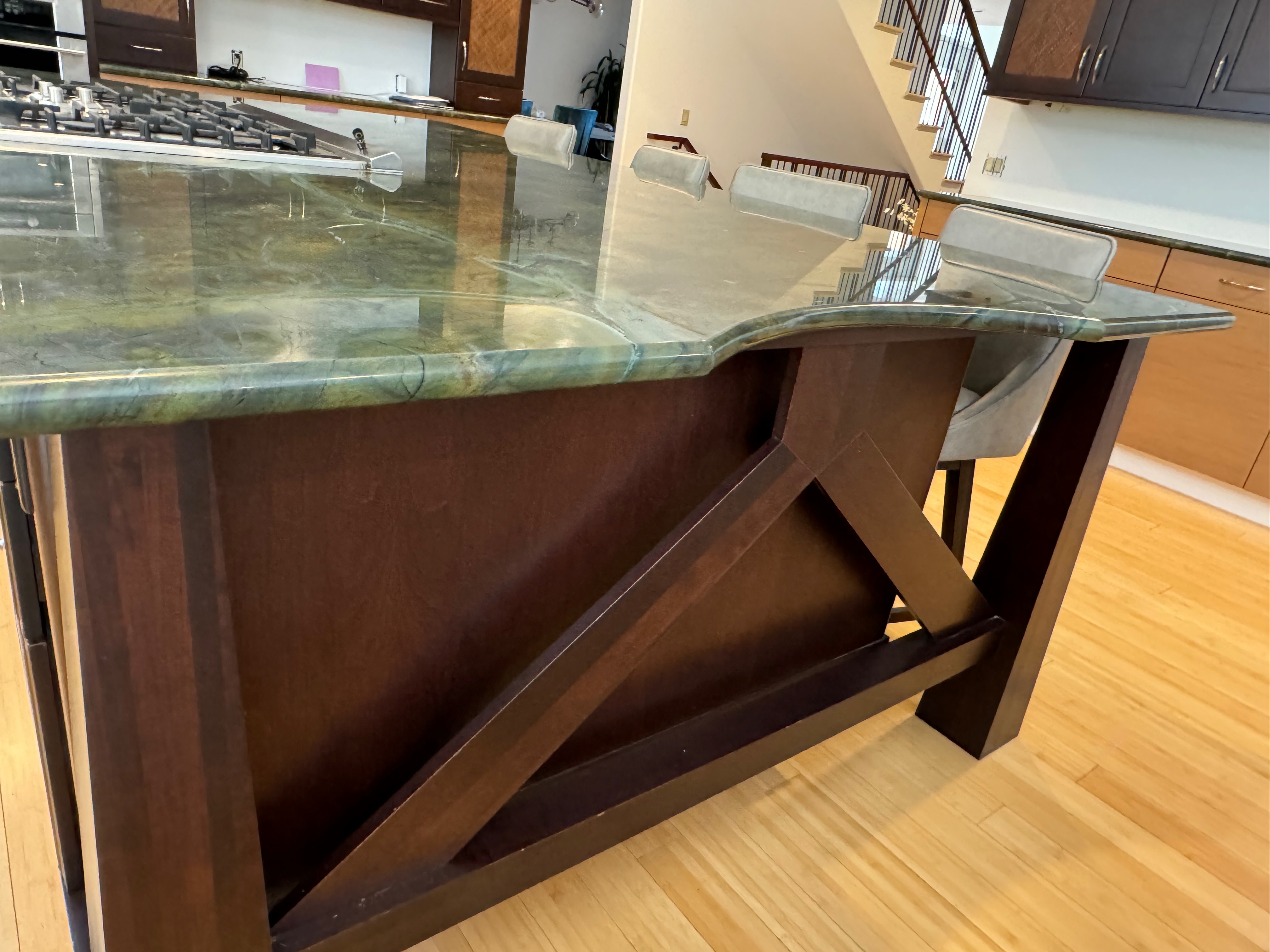 *The overall island came out well but the cabinet boxes/backs of the cabinets themselves were heavily glued so broke when uninstalled. The drawers, door fronts, sides and back of the island are all intact. New cabinet boxes could be made.